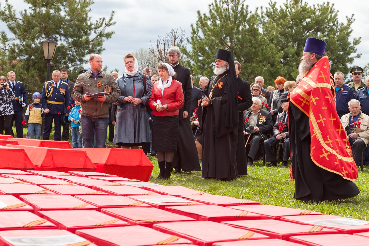 Церемония захоронения 1067 красноармейцев (это результат работы областной «Вахты памяти» за последние несколько лет) прошла на военном мемориальном кладбище «Парк мира и примирения» г. Ржев.