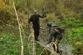 - Первый день экспедиции начался с установки лагеря и беседы с местными жителями, - говорит руководитель экспедиции Сергей Мачинский. – Они нам и указали место, где в годы войны располагался венгерский полицейский батальон. Судя по огромному количеству стреляных гильз, каратели часто вступали в боевые столкновения с партизанами. На следующий день мы обнаружили места стоянки обоза 3-й Армии, 80 процентов личного состава которой погибло, было ранено или пропали без вести во время выхода из окружения. На всем пути движения Армии нам то и дело попадались фрагменты бронетехники: советские воины понимали, что не смогут вытащить ее из болот, поэтому взрывали машины и орудия.