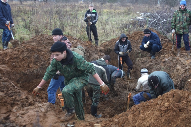 Кстати, в раскопе был обнаружен фрагмент берцовой кости пилота, которая так же подверглась сильному механическому воздействию. Эти останки поисковики захоронили в могилу Спиридонова на кладбище в Ворше, а на месте трагедии установили крест с фотографией летчика.