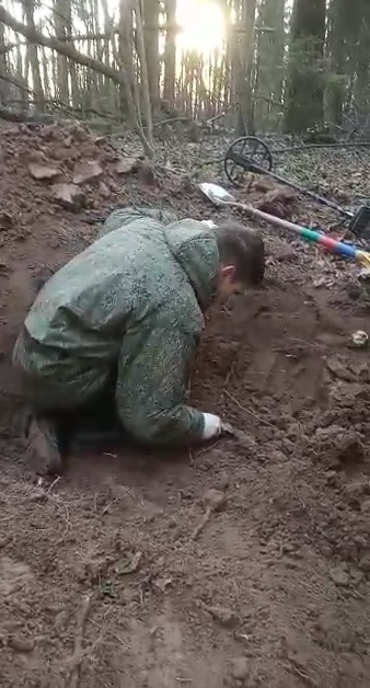 В верхнем слое земли поисковики обнаружили фрагменты останков красноармейца. Солдат остался лежать на поле боя в каске, сжимая в руке гранату в намерении метнуть ее во врага. К сожалению, медальона при нем не оказалось. Красноармеец будет захоронен на границе Новой Москвы и Калужской области, в братской могиле Мемориала «Поле воинской славы 1812 и 1941 годов - высота «Длинная» у деревни Кузовлево.