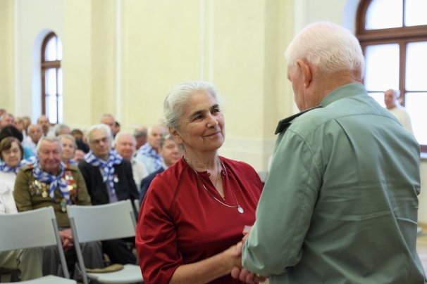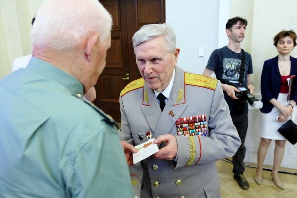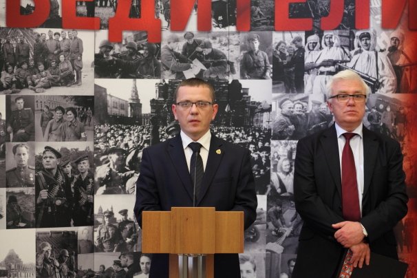 Далее, зале Государственного Исторического музея их приветствовали директор музея Алексей Левыкин, заместитель Исполнительного директора Российского военно-исторического общества Владислав Кононов и председатель «Фонда Памяти Полководцев» Наталия Конева. От имени Фонда родственникам легендарных полководцев были вручены медали в честь 70-летия Великой Победы, а от имени Российского военно-исторического общества всех участников ждал торжественный приём.