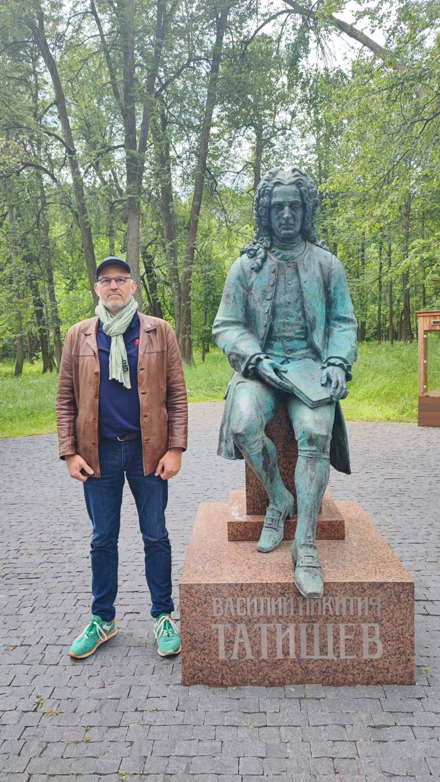 Пьер Жесткофф посетил старинную усадьбу своего предка - выдающегося историка и государственного деятеля Василия Никитича Татищева. Сейчас её восстановлением занимается Российское военно-историческое общество.