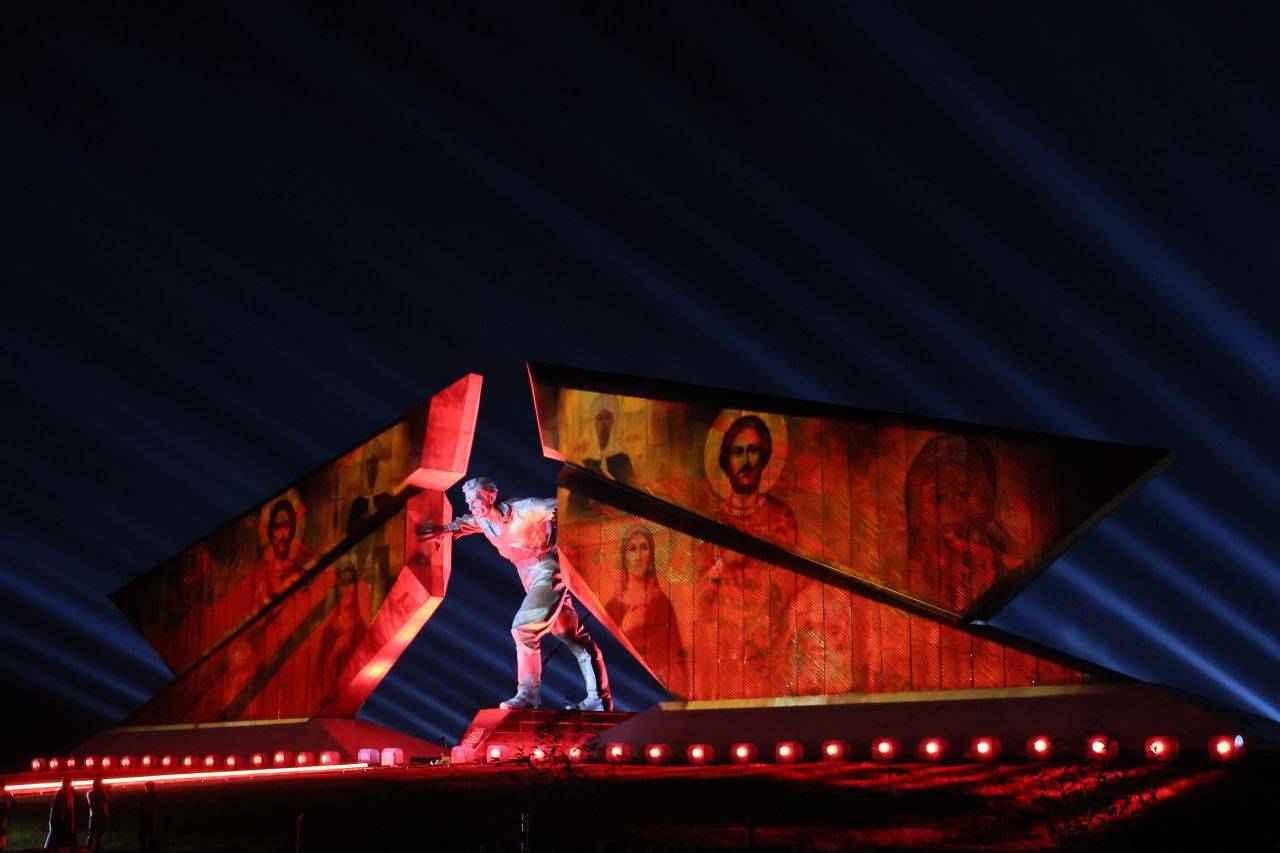 Владимир Путин выступил на торжественном открытии первой очереди мемориального комплекса «Курская битва» в посёлке Поныри по случаю 80-летия победы советских войск над немецко-фашистскими захватчиками в битве на Курской дуге.