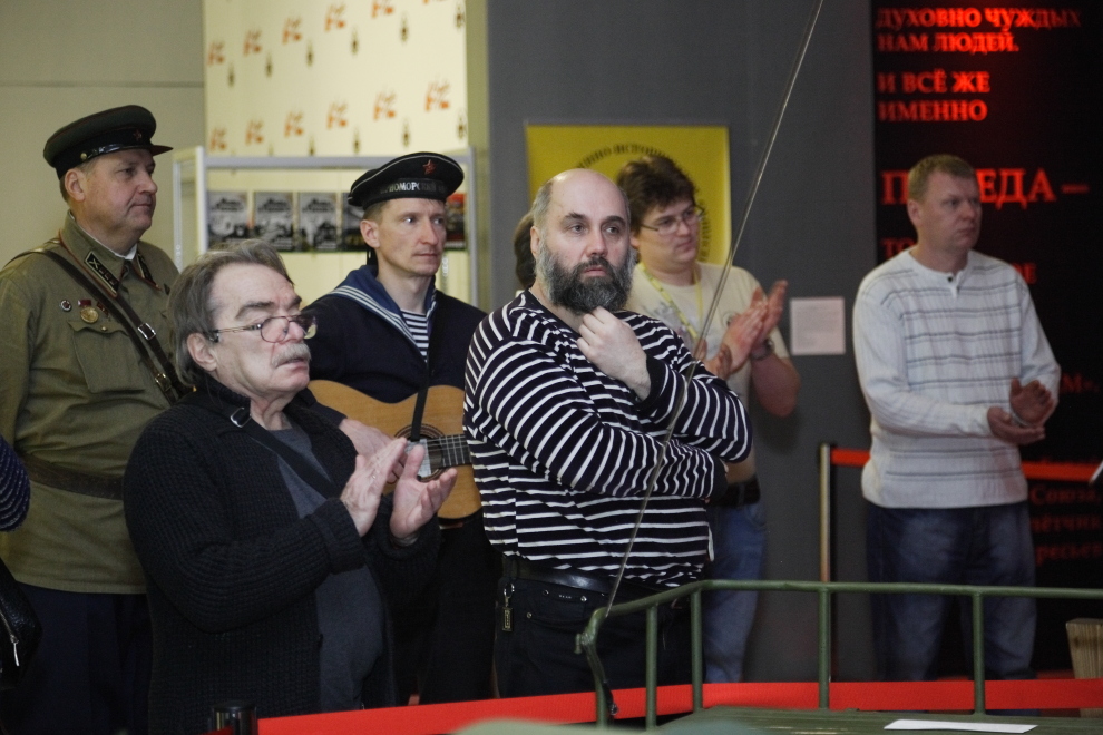 - «Долгие годы мы, оставшиеся в живых, с гордостью носили звание «панфиловец». Встречаясь с молодежью, мы рассказывали правду о войне, о наших однополчанах, о нашей родной 8-й Гвардейской панфиловской дивизии. Но вот когда нас, живых свидетелей великих исторических событий становится все меньше и меньше, появились так называемые «историки», которые пытаются переписать историю Великой Отечественной войны, принизить роль великих завоеваний народов Советского Союза, заставить молодежь усомниться в массовом героизме Советских людей. В свете всего вышеперечисленного, нам, панфиловцам, очень близка Ваша личная позиция отношения к памяти тех, кто ценой жизни защитил нашу Великую Родину… В знак глубокого уважения и признательности считаем Вас почетным членом Московской группы ветеранов-панфиловцев и просим принять в дар наш знак «панфиловец»» – зачитал обращение Владислав Кононов, отметив, что «самая высокая оценка работы выставки содержится в этом письме, в письме людей, которые не могут говорить неправду».