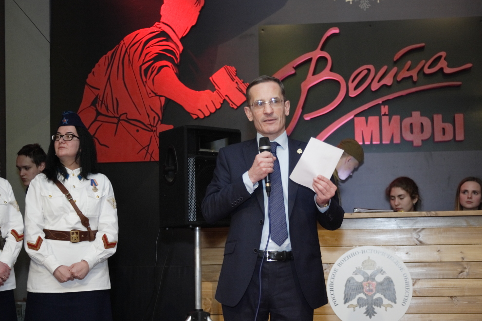 В торжественной церемонии приняли участие: исполнительный директор РВИО Владислав Кононов, научный директор РВИО Михаил Мягков, авторы и создатели выставки «Война и мифы», режиссер фильма «28 панфиловцев» Андрей Шальопа, члены съемочной группы, активисты РВИО.