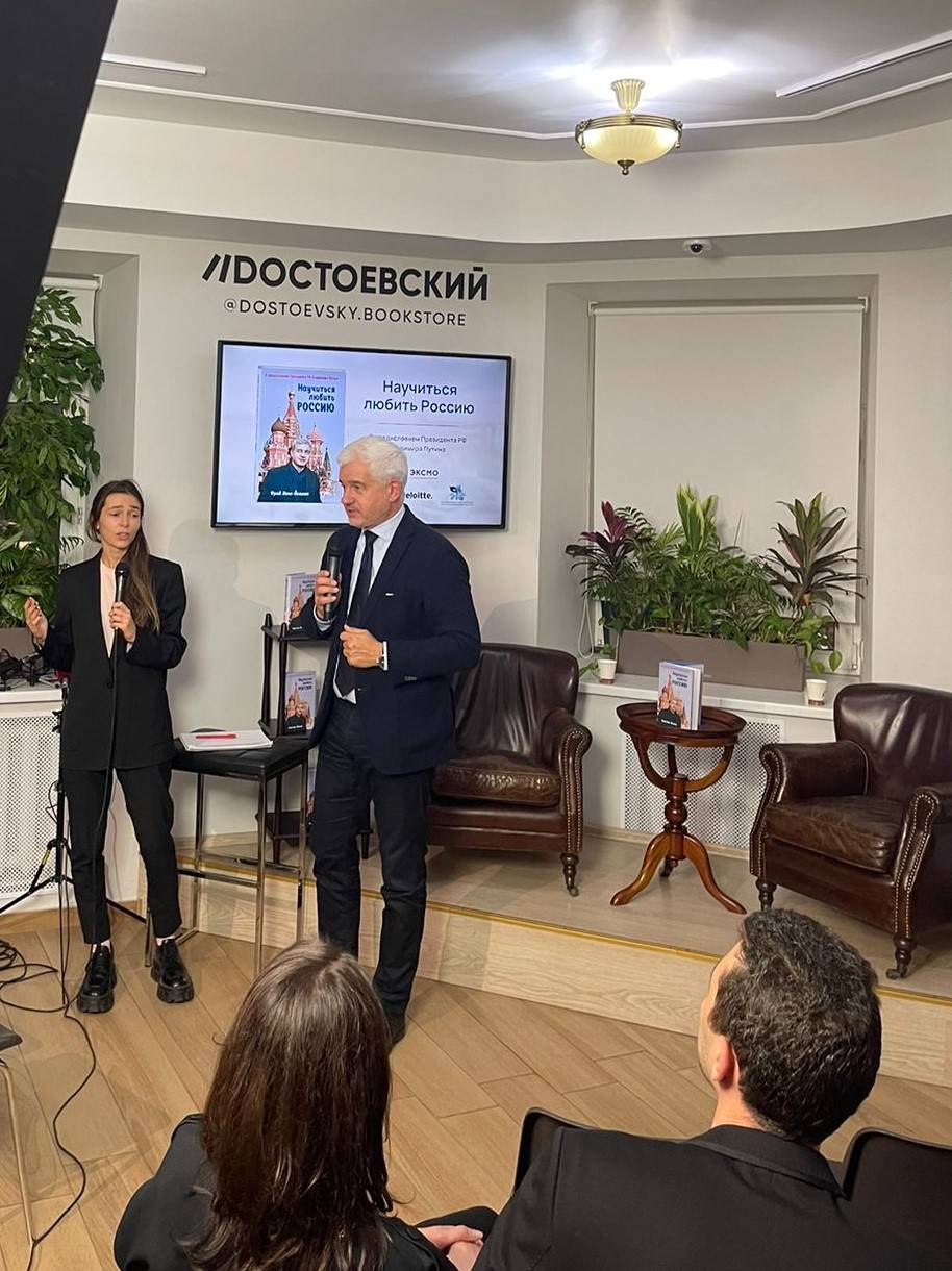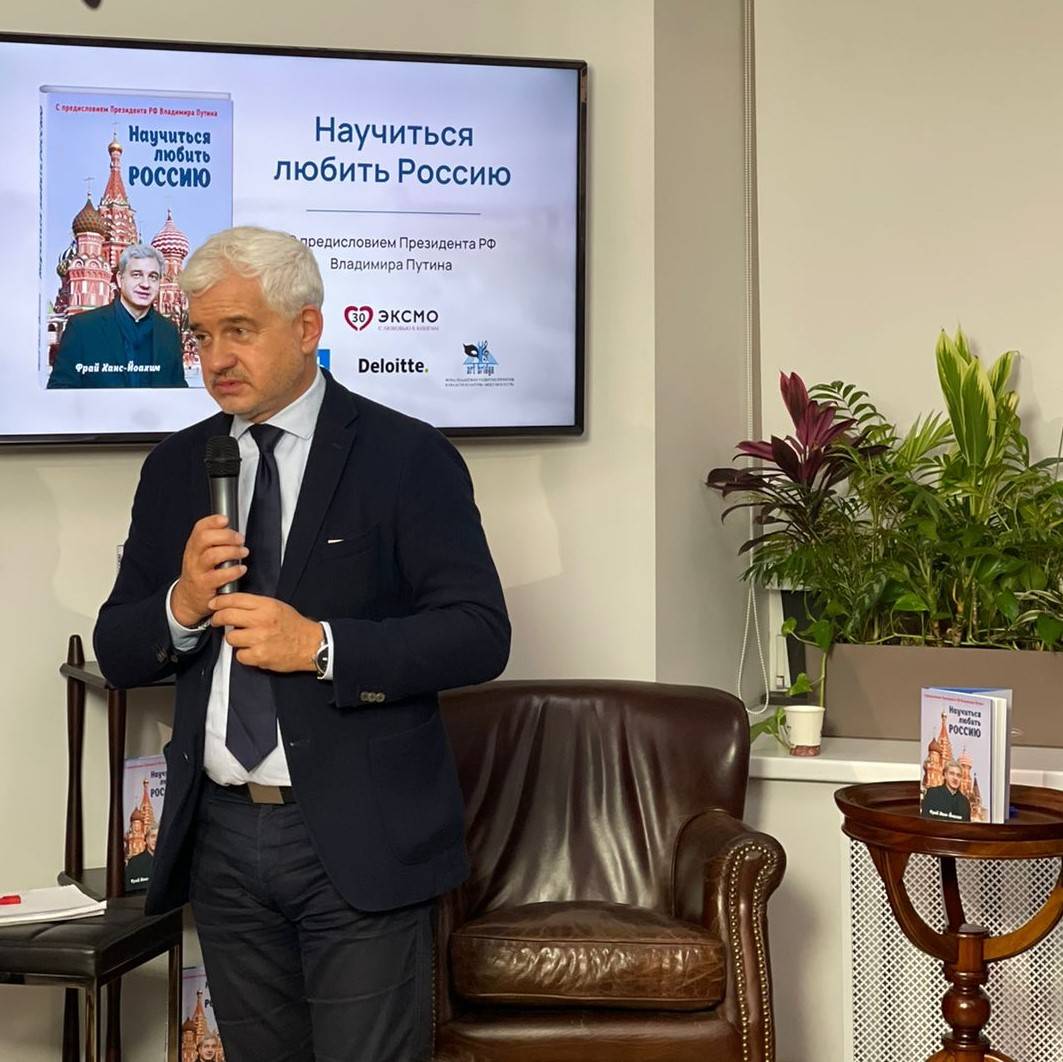 В Книжном клубе «Достоевский» сегодня прошла презентация книги европейского менеджера в области культуры и режиссера-постановщика Ханса-Йоахима Фрая «Научиться любить Россию». Мероприятие посетил Помощник Президента РФ, Председатель РВИО Владимир Мединский.