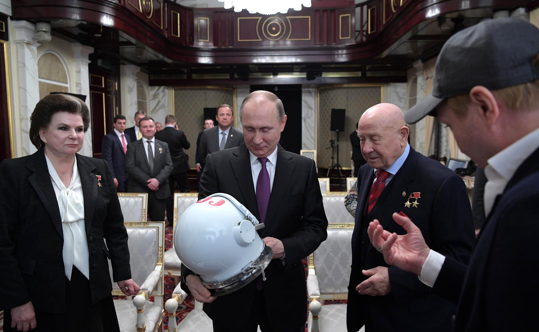 Президент Российской Федерации Владимир Путин пригласил в Кремль ветеранов-космонавтов Алексея Леонова и Валентину Терешкову, а также дочь основоположника практической космонавтики Сергея Королева Наталию и дочь первого космонавта Юрия Гагарина Елену. На просмотре также присутствовали глава Министерства культуры Владимир Мединский, продюсеры фильма Тимур Бекмамбетов и Евгений Миронов, руководитель Роскосмоса Игорь Комаров и начальник Центра подготовки космонавтов Юрий Лончаков.
