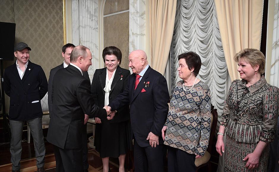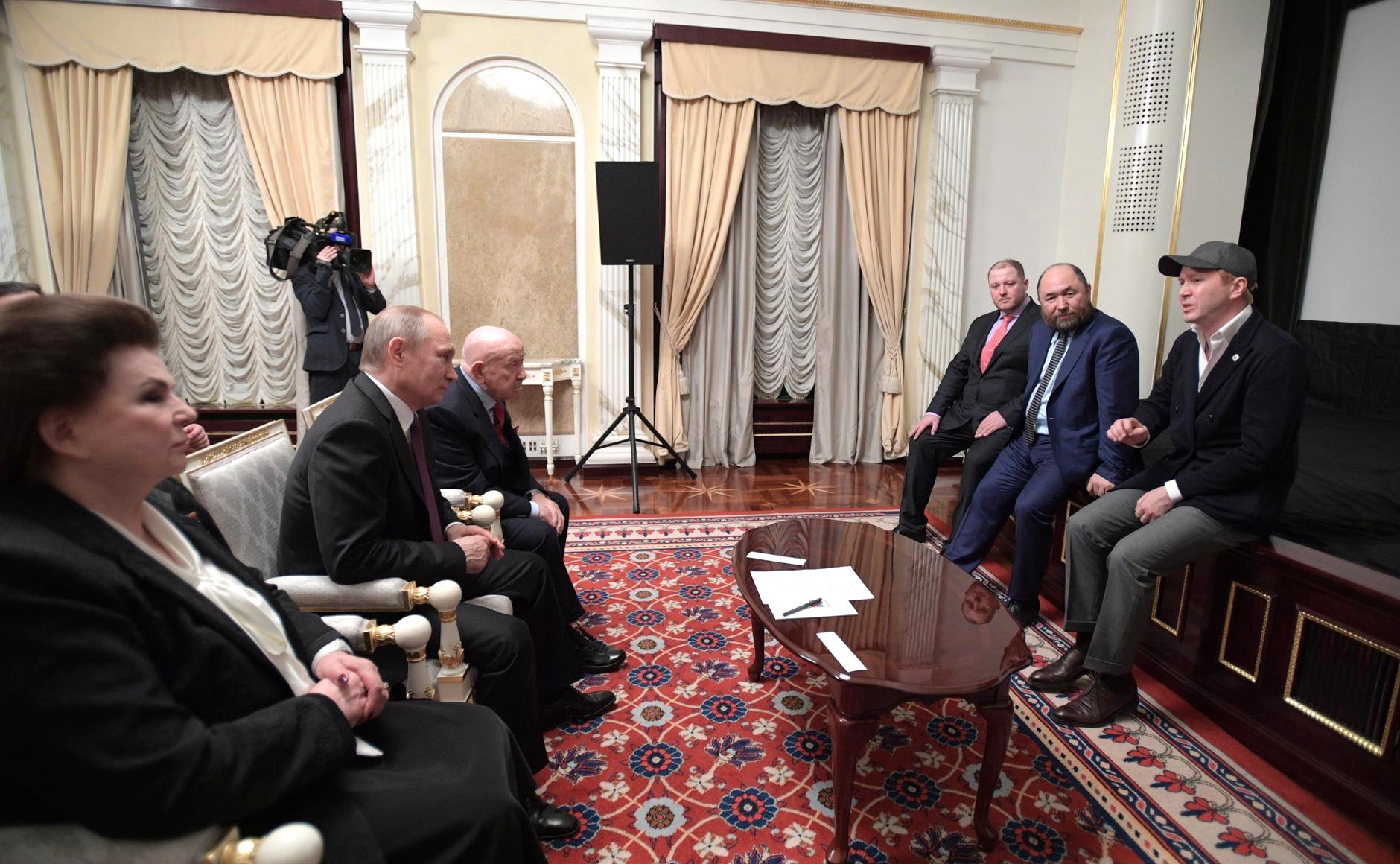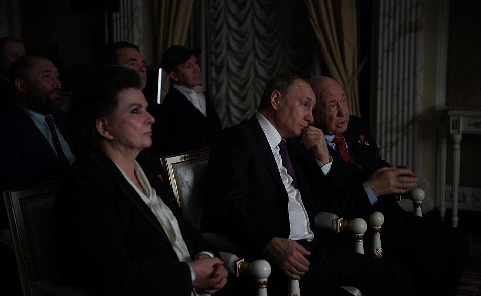 «Открывая встречу, Владимир Путин поздравил всех с Днем космонавтики, отметив, что достижениями в этой области Россия по праву гордится», - рассказал ТАСС пресс-секретарь главы государства Дмитрий Песков. По его словам, во время просмотра Владимир Путин и его гости обменялись впечатлениями о событиях, отраженных в картине. «Фильм президенту понравился», - отметил он.