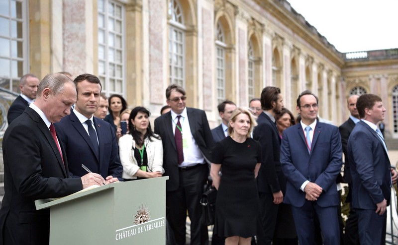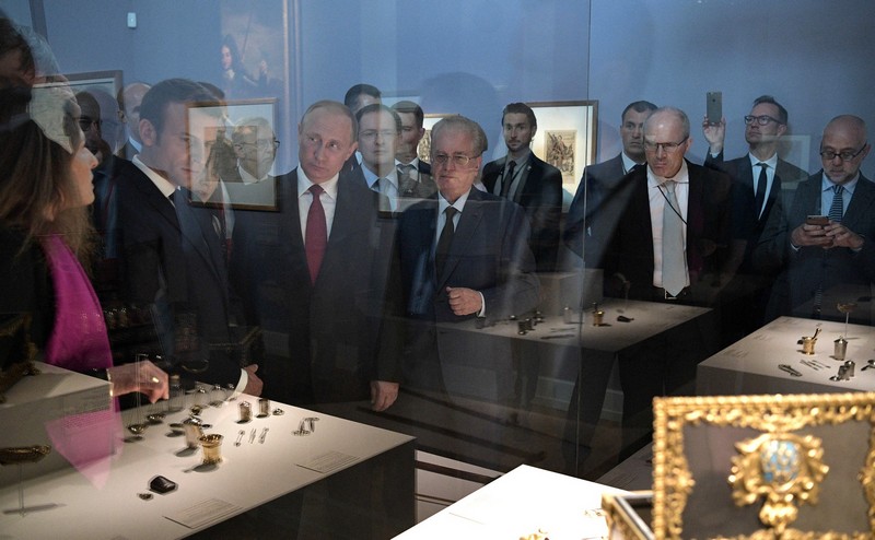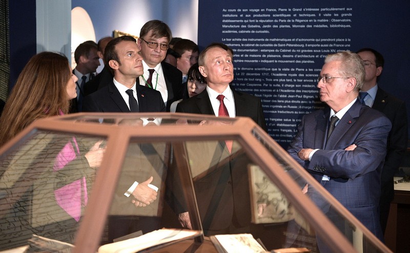 Президент Российской Федерации Владимир Путин и Президент Франции Эммануэль Макрон осмотрели выставку «Пётр Великий. Царь во Франции. 1717» во дворце Большой Трианон Национального музея замка Версаль, которая открылась для посетителей только сегодня, 30 мая.