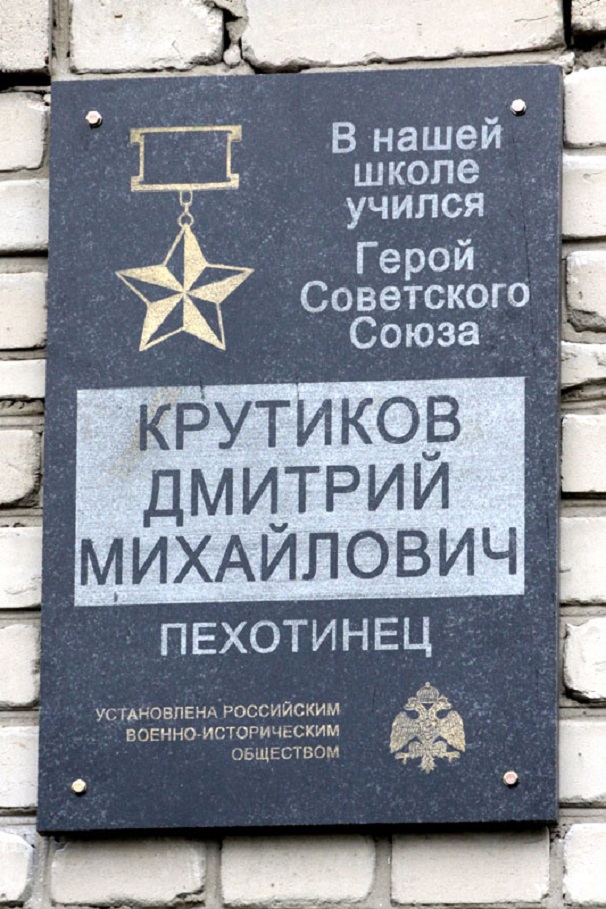 В Кургане в школе №14 состоялась церемония открытия мемориальной доски Герою Советского Союза Дмитрию Крутикову. Место размещения памятного объекта было выбрано неслучайно: будущий пехотинец Дима Крутиков был учеником этой школы, и сегодня учреждение носит его имя. На торжественной линейке присутствовали: ветераны Великой Отечественной войны, руководство регионального отделения Российского военно-исторического общества, представители общественных организаций, студенты и школьники. Участников торжественной линейки, посвященной этому событию, приветствовал Глава города Кургана Сергей Руденко.