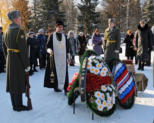 В церемонии приняли участие члены Вологодского регионального отделения Российского военно-исторического общества, члены Вологодской региональной общественной организации «Вологодское объединение поисковиков», ветераны, родственники солдата, жители города, представители властей. Заупокойное поминовение совершил отец Кирилл. Дочери солдата были переданы найденные с ним медальон и мундштук. Нина Анатольевна сердечно поблагодарила поисковиков за проделанную работу.