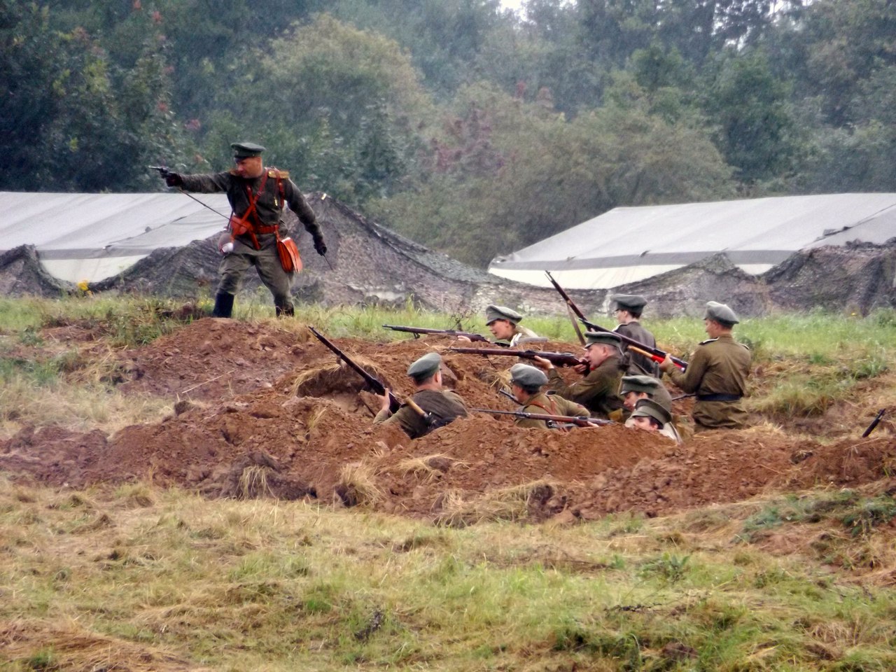 На бывшем поле боя, близ современного поселка Лермонтово городского округа Гусев Калининградской области, воссоздали один из эпизодов «Последнего наступления старой армии» 1917 года.