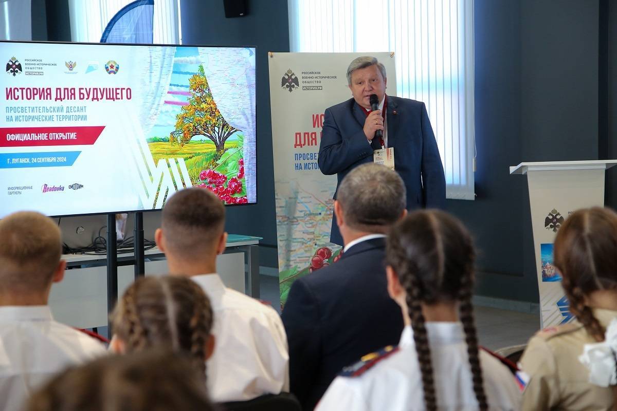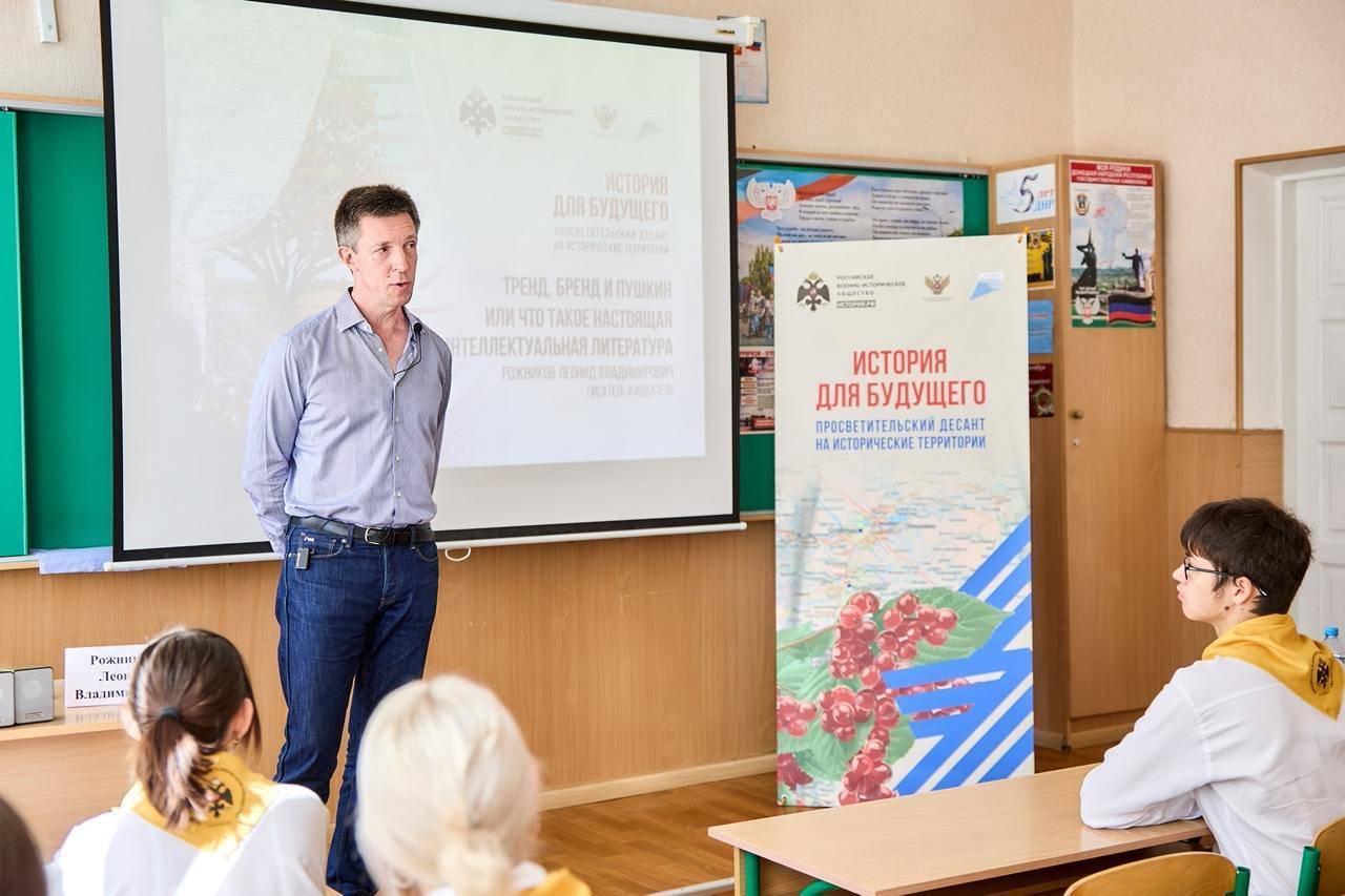 Также в рамках просветительского десанта состоялось торжественное открытие профильных классов Российского военно-исторического общества на базе Луганского экономико-правового лицея-интерната имени героев «Молодой гвардии» и Многопрофильного лицея №1 в Донецке. Инициатива открытия специализированного класса в донецкой школе принадлежит директору учебного заведения, выпускнице проекта РВИО «Курс молодого бойца» Дарье Ющенко.