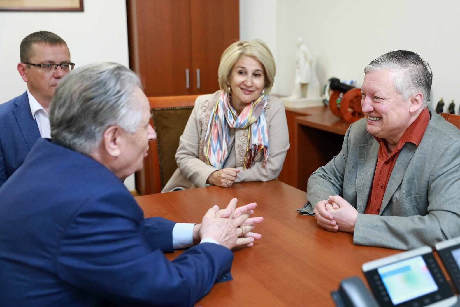 Сегодня в Российском военно-историческом обществе состоялась рабочая встреча с известным шахматистом, международным гроссмейстером, почетным членом РВИО Анатолием Карповым.