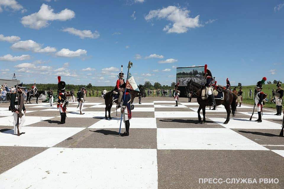 Напомним, прошлый фестиваль-турнир прошел в Бородино в 2017 году. Знаменитую «Бессмертную партию» сыграли на огромном шахматном поле, где фигурами выступили реконструкторы в мундирах русской и французской армий времён Войны 1812 года. Игра сопровождалась масштабным представлением: каждый ход соперников, сделанный на доске, дублировался на шахматном поле под открытым небом. Также гости праздника смогли посетить интерактивный лагерь 1812 года, познакомиться с бытом солдат и офицеров, рассмотреть мундиры и амуницию того времени.