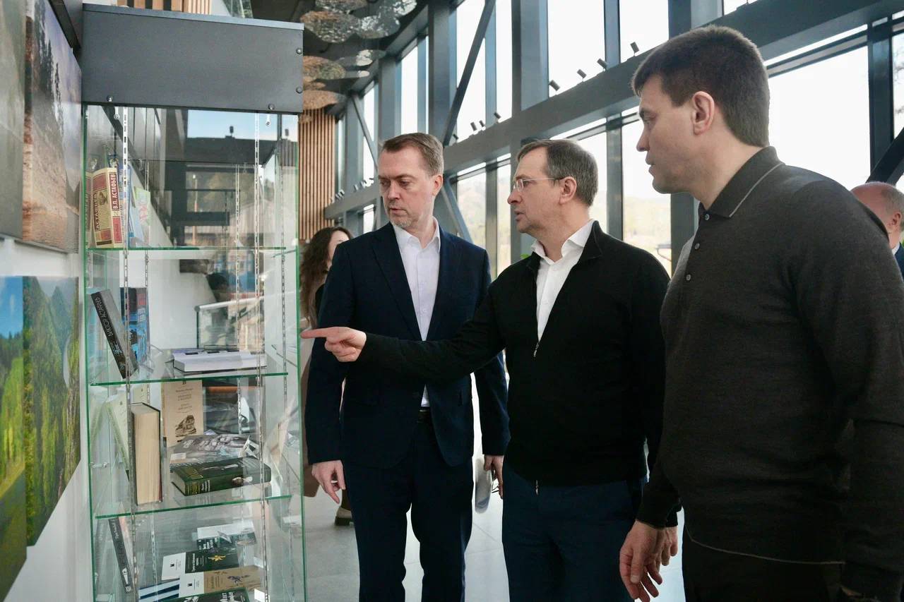 Помощник Президента РФ, Председатель Российского военно-исторического общества, Председатель Союза писателей России Владимир Мединский вместе с Губернатором Красноярского края Михаилом Котюковым посетил один из ключевых объектов культурной инфраструктуры региона - Национальный центр В.П.Астафьева в селе Овсянка.