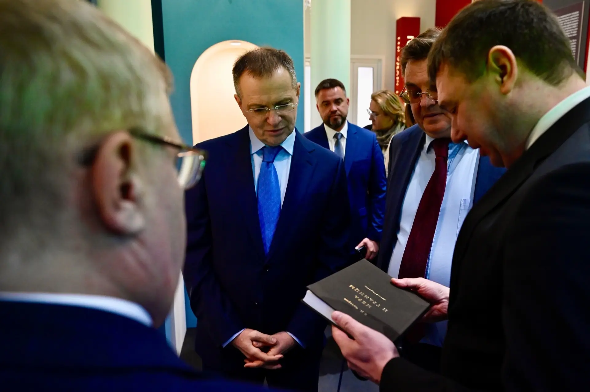 Владимир Мединский совместно с Евгением Первышовым осмотрели экспозицию музейного центра «Наследие Земли Тамбовской».