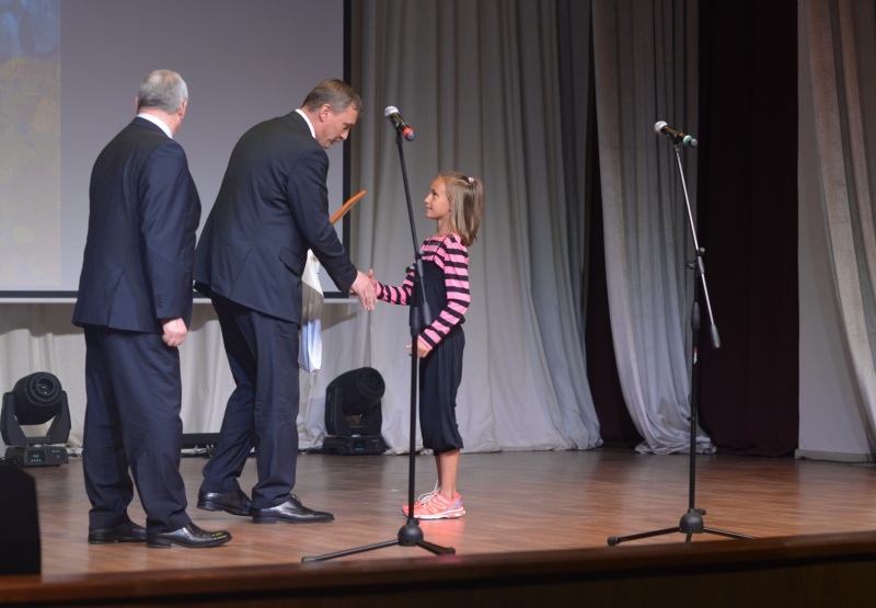 На съезде Союза городов воинской славы глава администрации Архангельска Игорь Годзиш поздравил победителя конкурса «Дети рисуют мир» — 10-летнюю Наталью Бицоеву из Республики Северная Осетия-Алания.