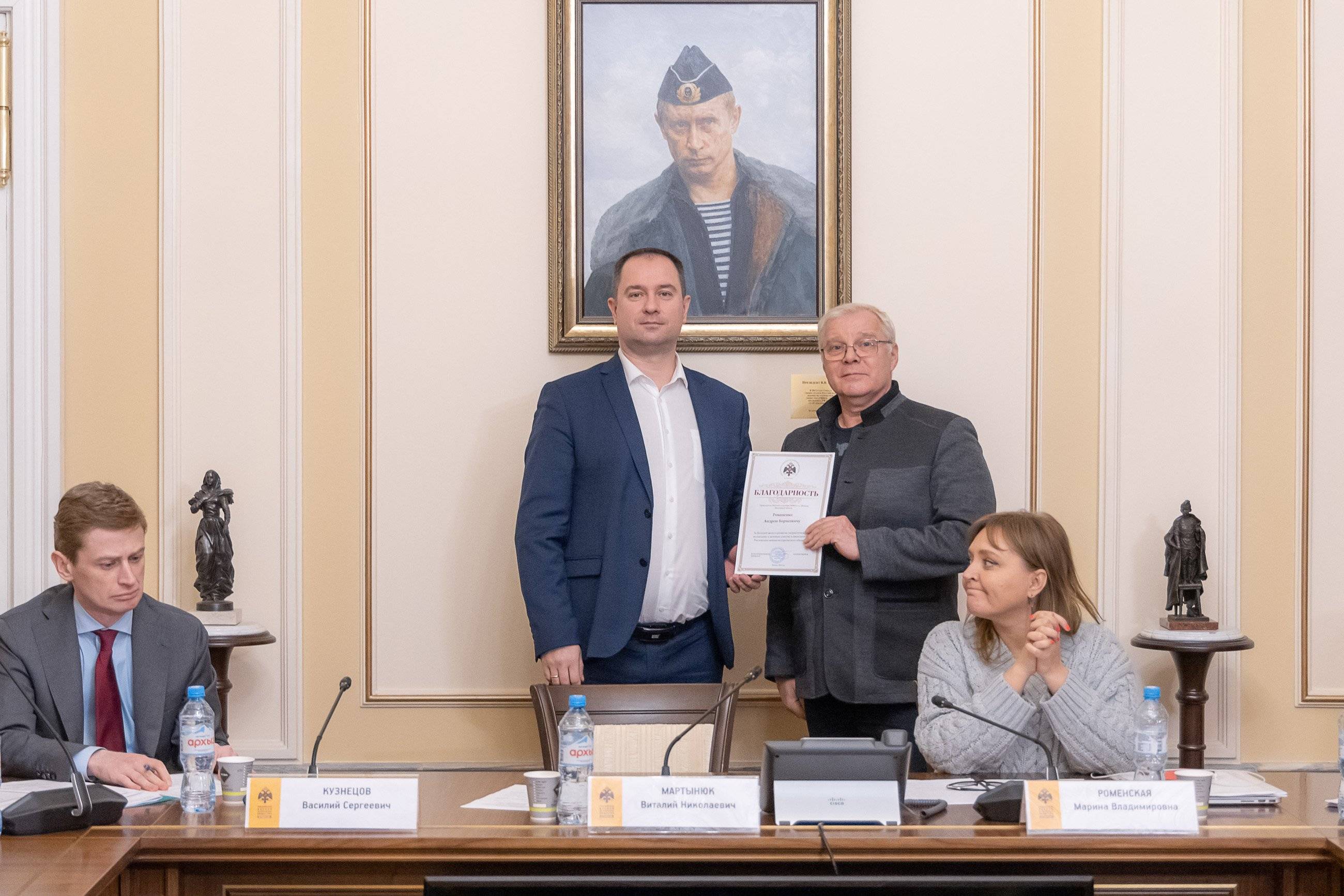 Виталий Мартынюк вручил благодарственные грамоты активу Регионального отделения за большой вклад в развитие военно-патриотического воспитания и участие в деятельности Российского военно-исторического общества.