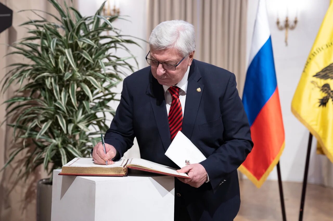 Анатолий Торкунов поблагодарил Владимира Мединского и сотрудников музея за создание интересной экспозиции и оставил запись в книге почетных гостей.