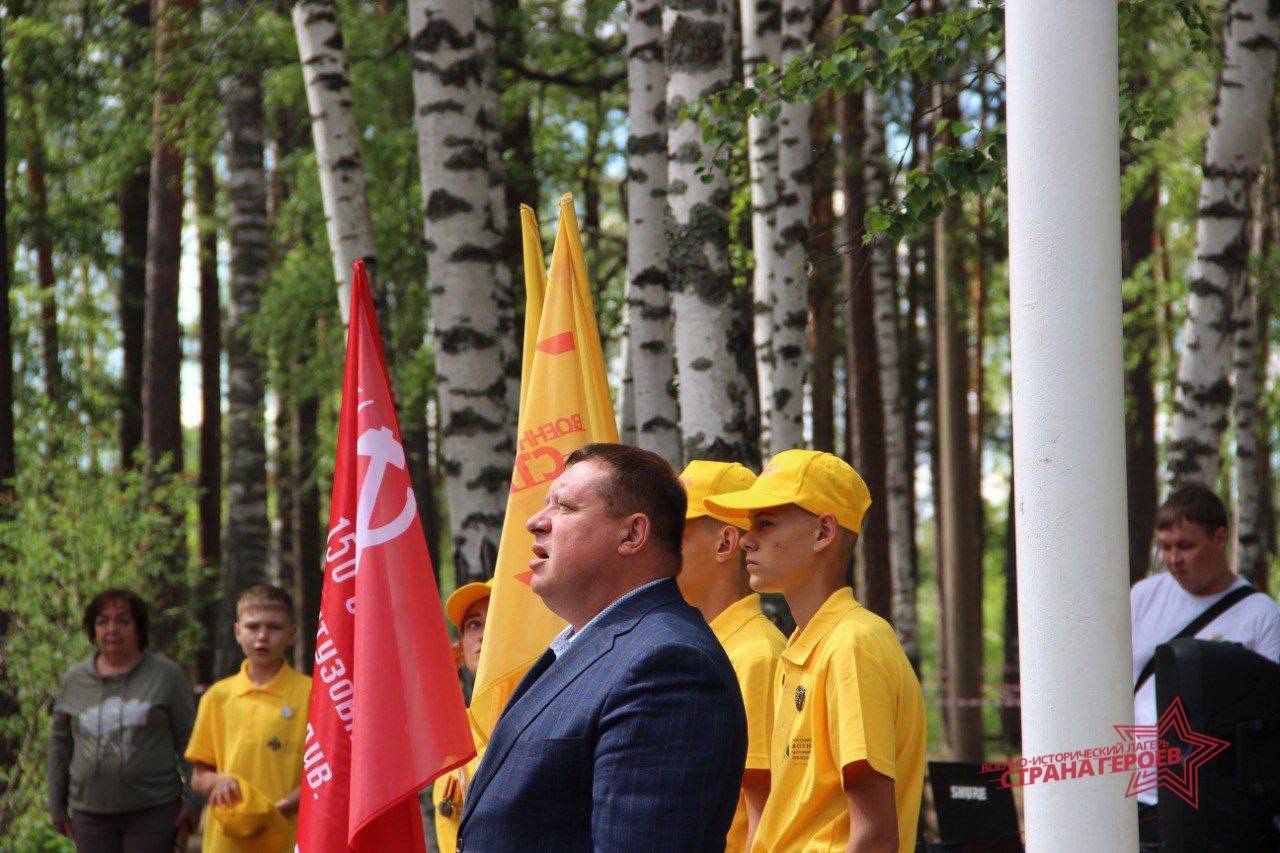 На главной площади лагеря собрались участники, вожатые, педагоги и почетные гости, в числе которых: директор лечебно-оздоровительного комплекса «Лесная сказка» Дмитрий Цетва, заместитель начальника управления воспитания и дополнительного образования Министерства образования и науки Республики Марий Эл Елена Таныгина, программный директор военно-исторического лагеря «Страна Героев» Ксения Шумская.