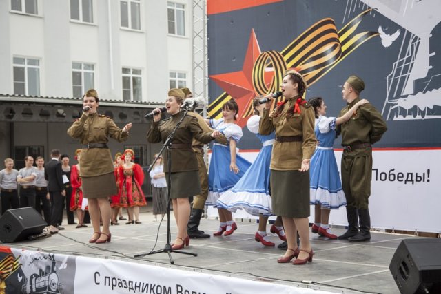 Торжественная встреча завершилась большим праздничным концертом художественных коллективов города. Звучали песни военных лет и современные произведения военно-патриотической тематики.
