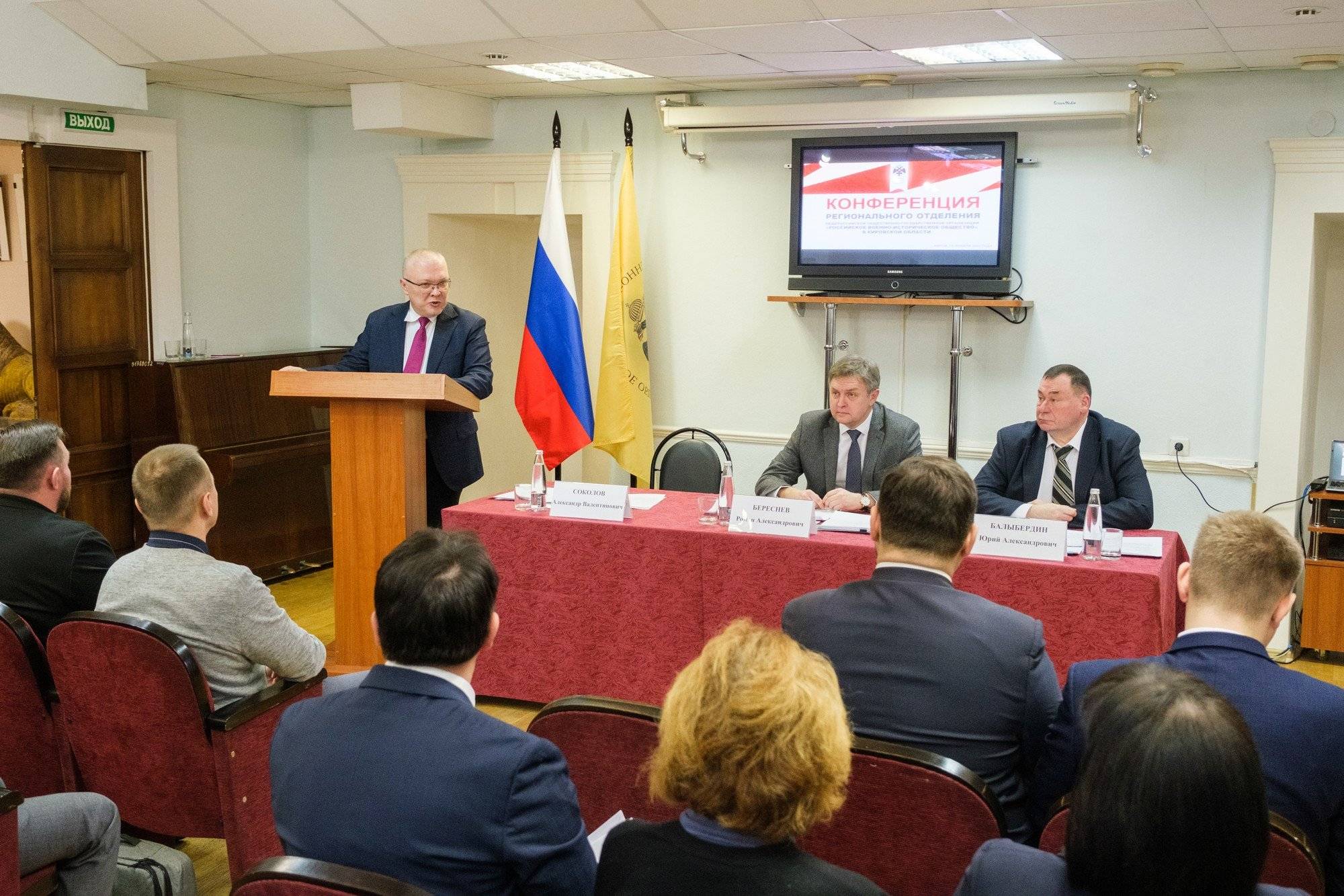 В работе конференции приняли участие Глава региона Александр Соколов, Председатель Законодательного Собрания Кировской области, и.о. Председателя Регионального отделения Российского военно-исторического общества в Кировской области Роман Береснев и его заместитель, директор Краеведческого музея Юрий Балыбердин, уполномоченное лицо регионального отделения Альбина Покручина, а также члены реготделения, представители 12 местных отделений РВИО и ведущие историки области.