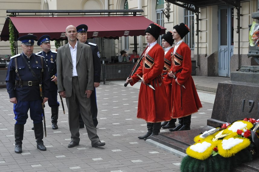 - В церемонии участвовали 2 казачьих объединения - Невский казачий округ и Императорский конвой, - рассказал Уполномоченный представитель по Северо-Западному федеральному округу Российского военно-исторического общества Кирилл Королев. - Церемонии предшествовала панихида по казакам и "вождям" войска казачьего, жизнь положившим за Отечество и Веру на полях Великой войны. На венке написано «Героям-гвардейцам от Российского военно-исторического общества». Его возлагали атаманы Алексей Баштин и Григорий Пропалов. Эта война долгое время оставалась "белым пятном" в российской истории, и памятные церемонии, которые проходят в августе 2014 года во многих городах Северо-Западного федерального округа, призваны восстановить историческую справедливость. Как показало мероприятие, людям это, действительно, надо: случайные прохожие на Витебском вокзале подходили и благодарили нас, говорили: « Вы делаете очень важное дело».