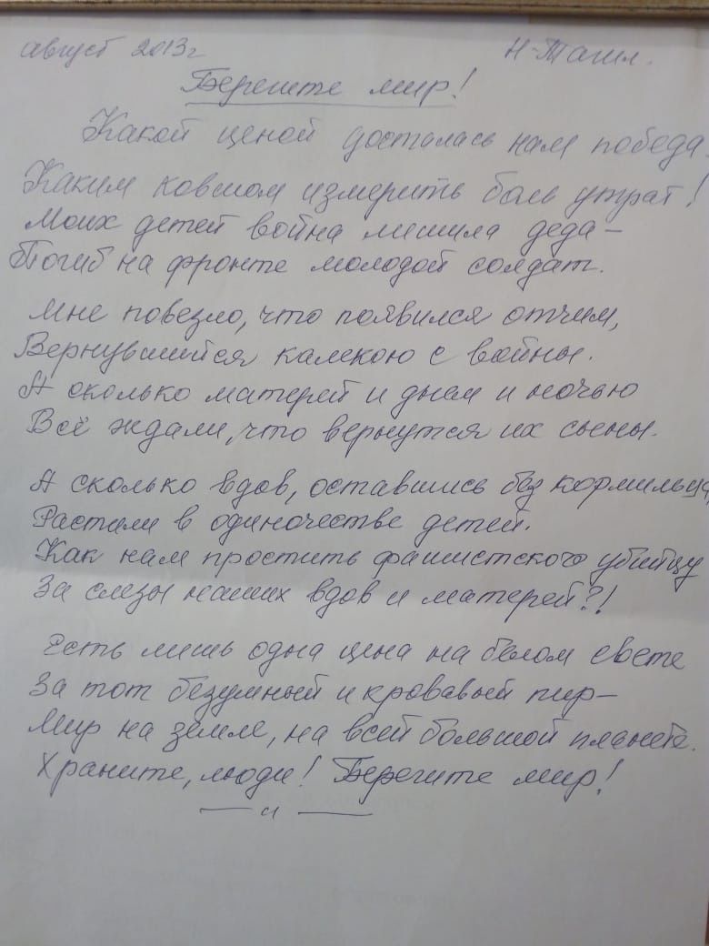 - Больше двадцати лет я искала захоронение моего отца - Петрочука Антона Тарасовича, 1908 г.р. У меня была справка из военкомата, что по сведениям 1945 пода он похоронен в Германии, в населенном пункте Ной Шлезинг. А все архивы отвечали одно: «Без вести пропал». И только недавно, через Красный Крест России выяснилось, что его могила находится в Польше. Часть Германии, где он погиб, после войны отошла к Польше. Ной Шлезинг был переименован, поэтому я много лет безрезультатно искала это село в Германии. На момент начала своих поисков я была на 20 лет моложе. Сейчас уже не то здоровье, но мечта навестить могилу отца не покидает меня до сих пор, словно моя обязанность – долг перед погибшим отцом, - написала Нелли Овсянникова.