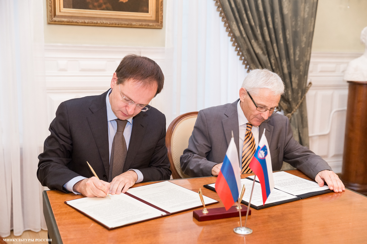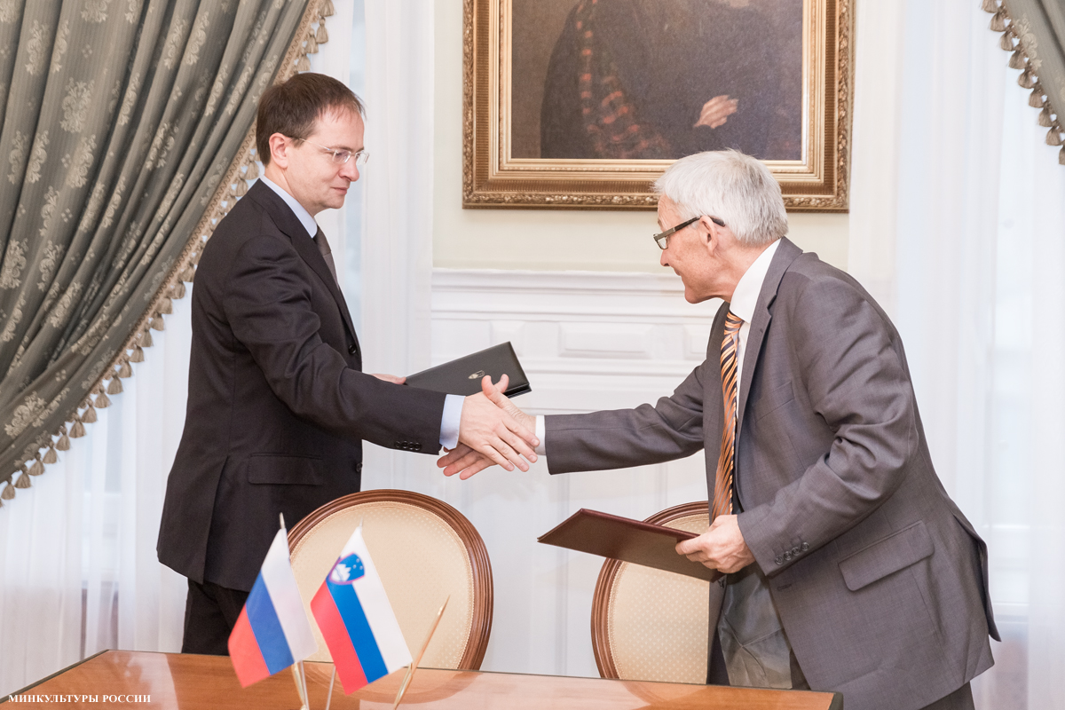 Сегодня Министр культуры Российской Федерации, Председатель Российского военно-исторического общества Владимир Мединский и Министр культуры Словении Антон Першак подписали Соглашение о сотрудничестве в области культуры между Россией и Словенией. Планируется, что «перекрестные» сезоны культуры Россия-Словения включат в себя Неделю российского кино, а также военно-исторический фестиваль.