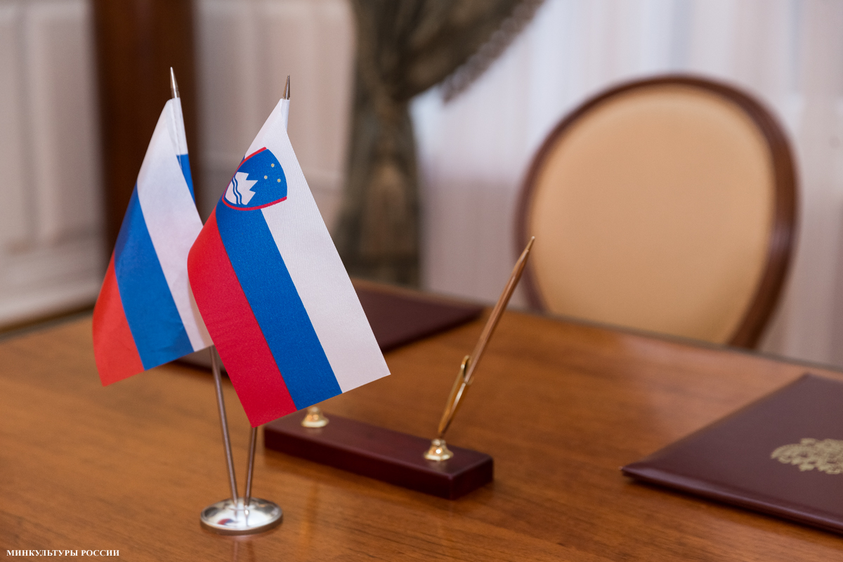 В настоящее время основу сотрудничества в области культуры между Россией и Словенией составляют Соглашение между Правительством Российской Федерации и Правительством Республики Словении о сотрудничестве в области культуры, науки и образования от 17 ноября 1995 года и Программа сотрудничества между Правительством Российской Федерации, и Правительством Республики Словении в области культуры, науки, образования и спорта в период 2016-2018 гг. от 27 июля 2015 года.