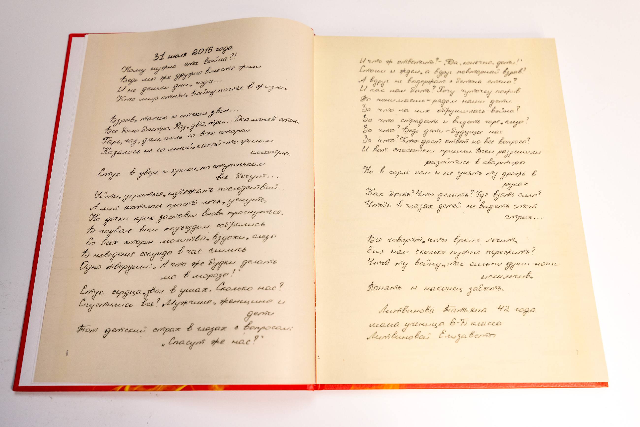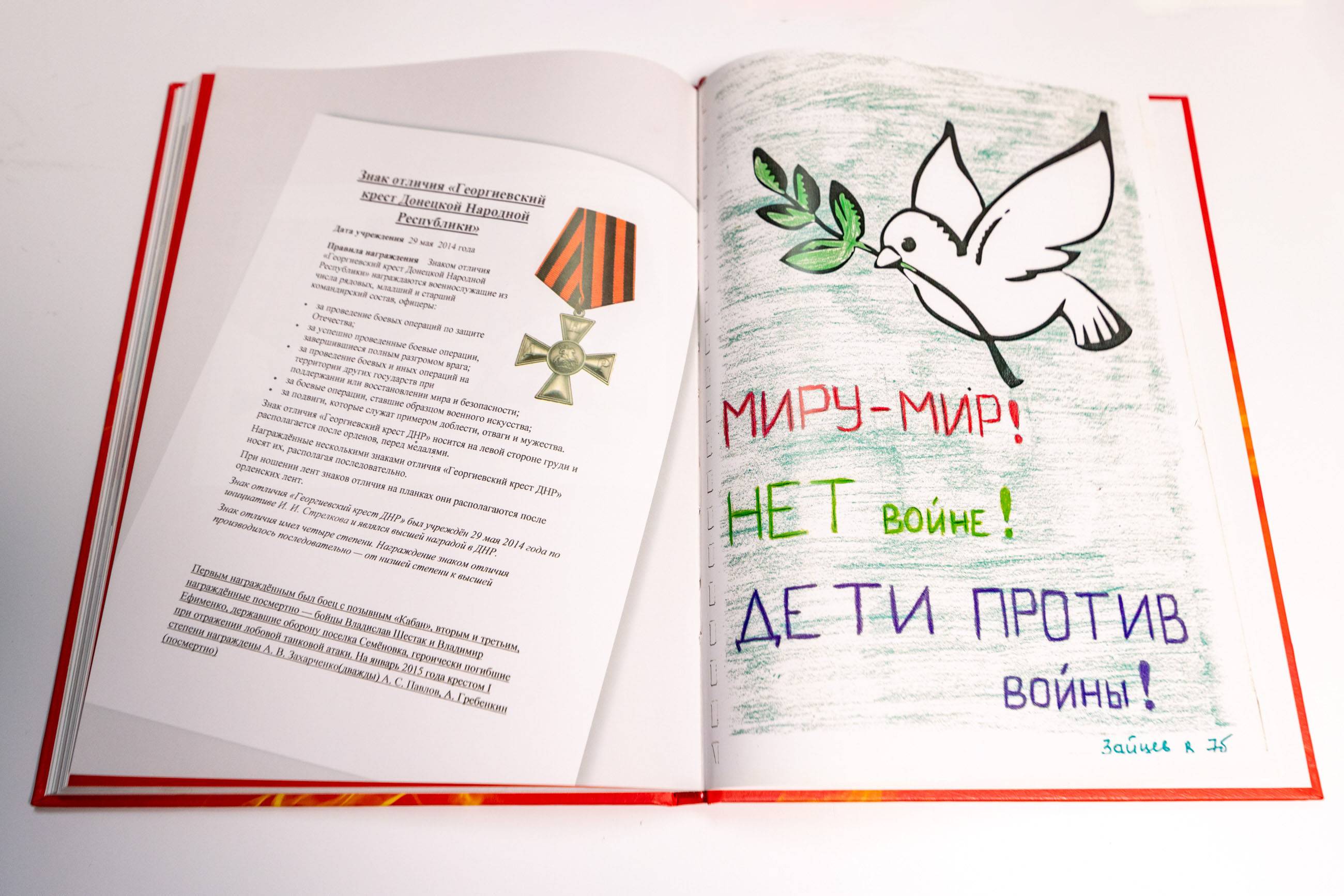 В завершение встречи Андрей Шмидт передал в дар Ростиславу Мединскому «Книгу Памяти». Это рукописный сборник сочинений детей города Ясиноватая о войне на Донбассе. Они были написаны в 2014 году: тогда традиционная тема «Как я провел лето» трансформировалось в рассказы о войне. Издать книгу было решено в рамках подготовки к Всероссийскому форуму Городов трудовой доблести «Челябинск – ДНР. Герои Танкограда. Путь к Победе».