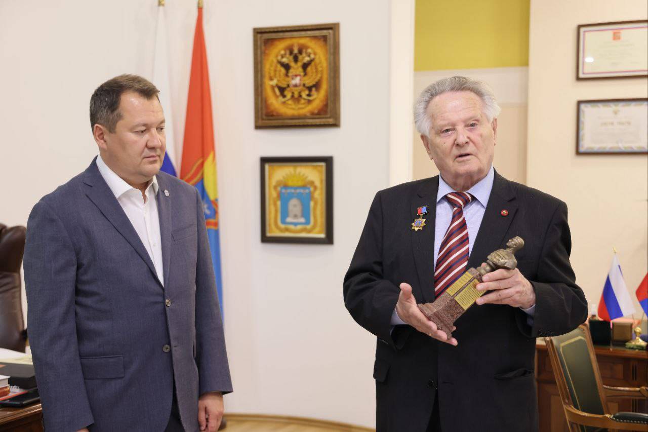 В завершение встречи Ростислав Мединский вручил Главе Тамбовской области Максиму Егорову грамоту и медаль «180 лет М.Д. Скобелеву» за большой вклад в сохранение исторического воинского наследия и памяти выдающегося полководца и государственного деятеля России Михаила Скобелева. Также Советник Председателя подарил Главе региона подборку журналов Российского военно-исторического общества «Идеология будущего», включая новый юбилейный выпуск, и уменьшенную копию Памятника-бюста Маршала Советского Союза Александра Василевского.