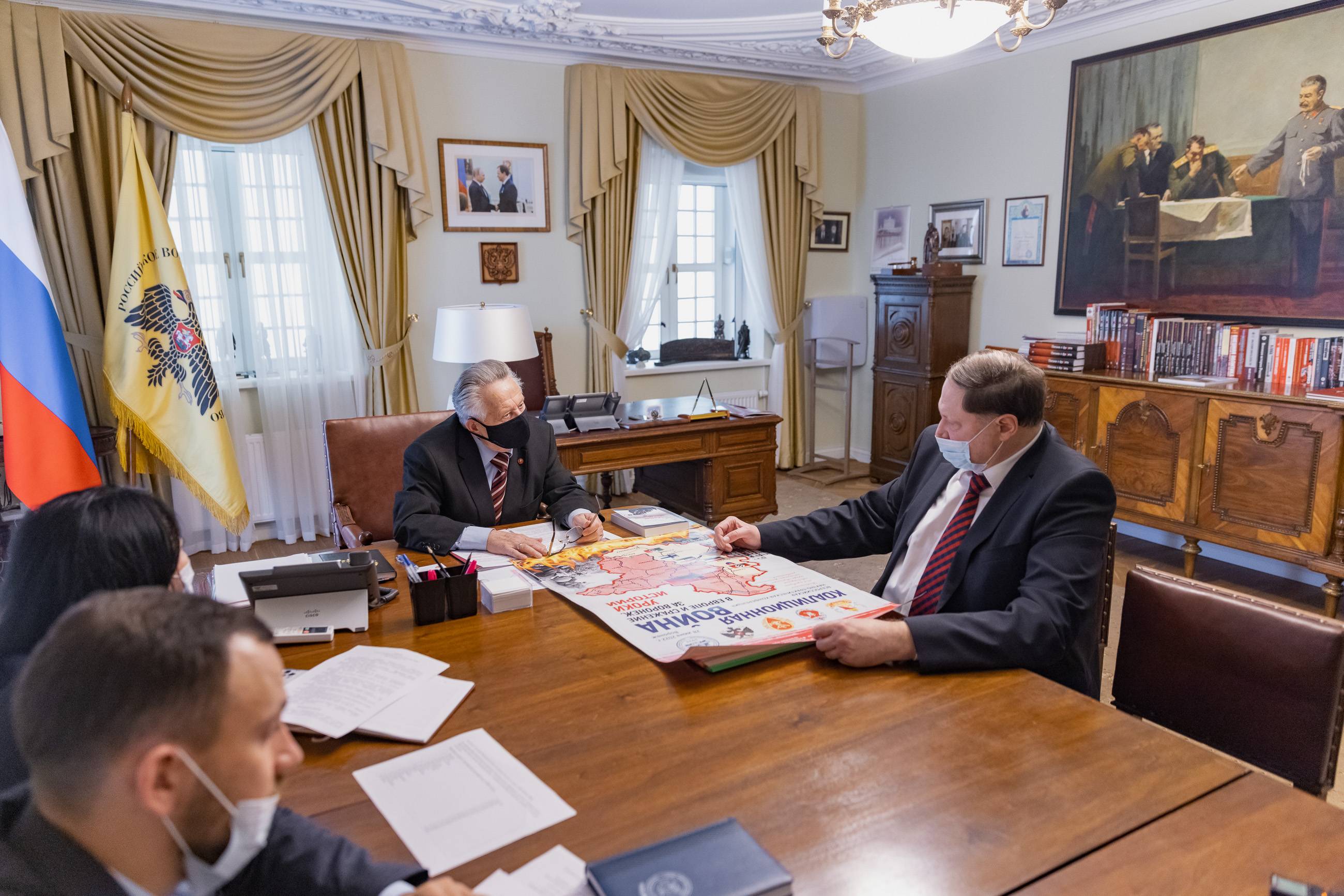 Особое внимание Ростислав Мединский и Сергей Филоненко уделили вопросам патриотического воспитания молодежи и увековечивания памяти Защитников Отечества.