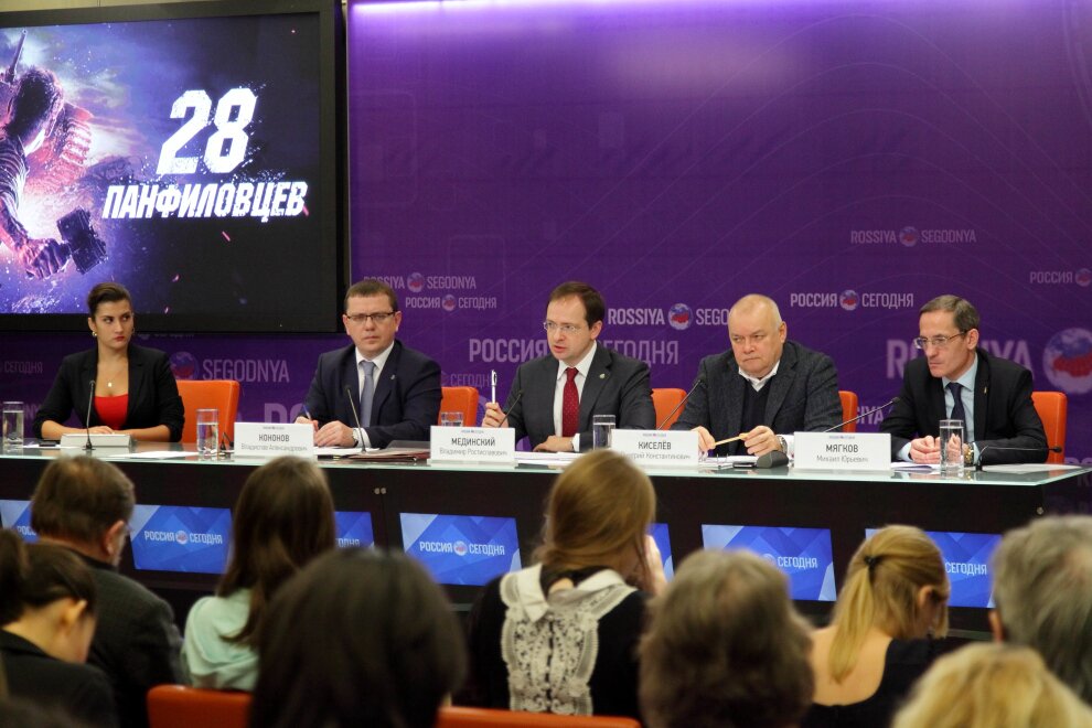 На вопросы журналистов ответили Председатель Российского военно-исторического общества, Министр культуры Российской Федерации Владимир Мединский, Председатель Комиссии Центрального Совета РВИО по информационной политике Дмитрий Киселев, исполнительный директор Российского военно-исторического общества Владислав Кононов и научный директор Российского военно-исторического общества Михаил Мягков.