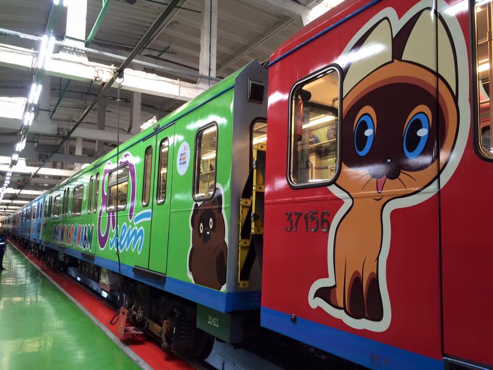 В День российского кино (27 августа) в честь 80-летия «Союзмультфильма», Московский метрополитен совместно с коллективом одноимённой студии, Киностудией им. М. Горького и Российским военно-историческим обществом при поддержке Министерства культуры РФ представили поезд, оформленный кадрами из знаменитых мультипликационных фильмов. Новый состав будет курсировать на Серпуховско-Тимирязевской ветке метро.