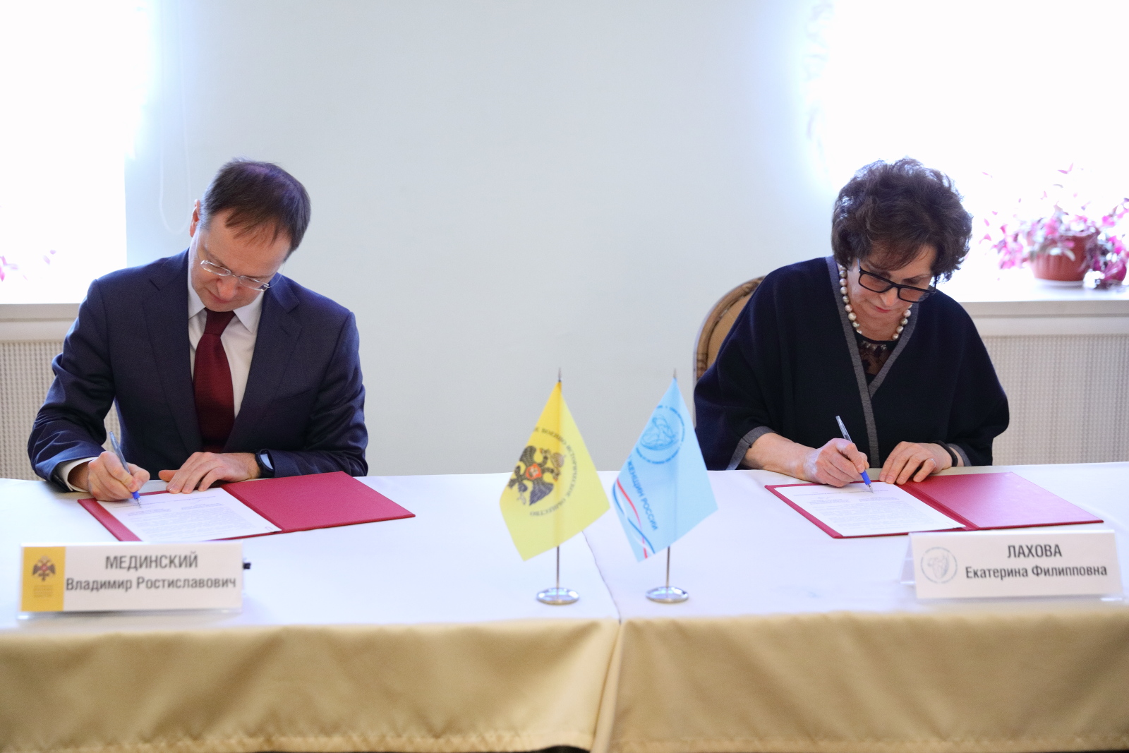 Сегодня Российское военно-историческое общество и Союз женщин России заключили соглашение о сотрудничестве. Документ подписали Помощник Президента РФ, Председатель РВИО Владимир Мединский и Председатель Союза женщин России Екатерина Лахова.