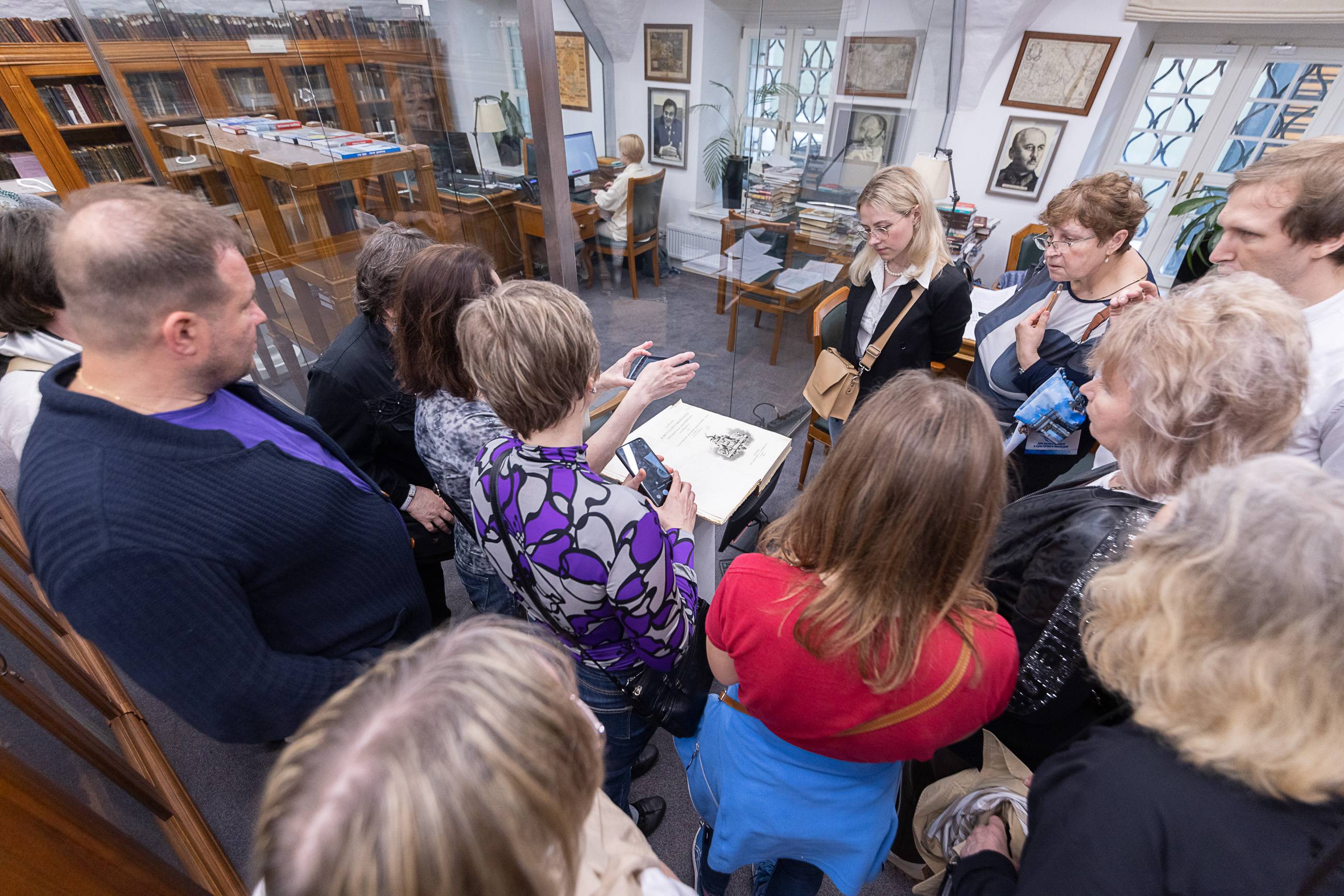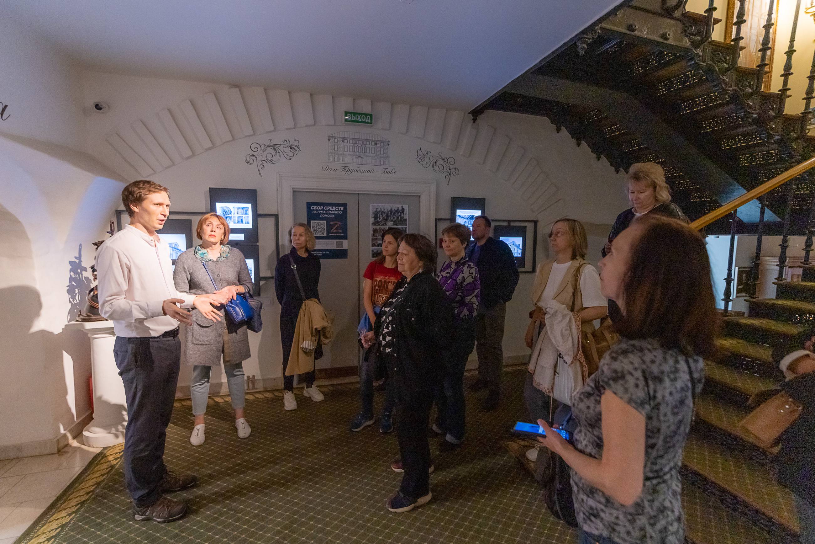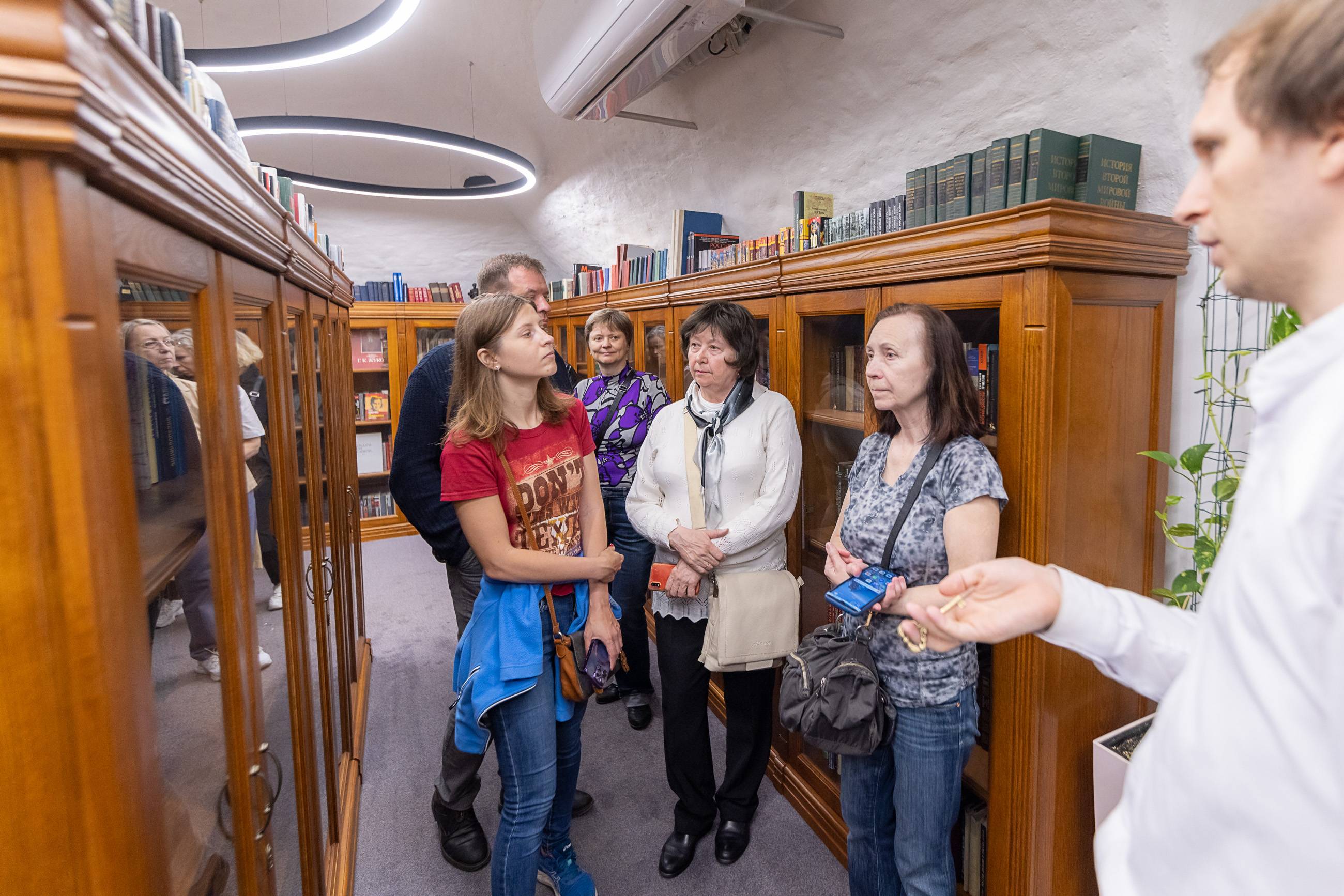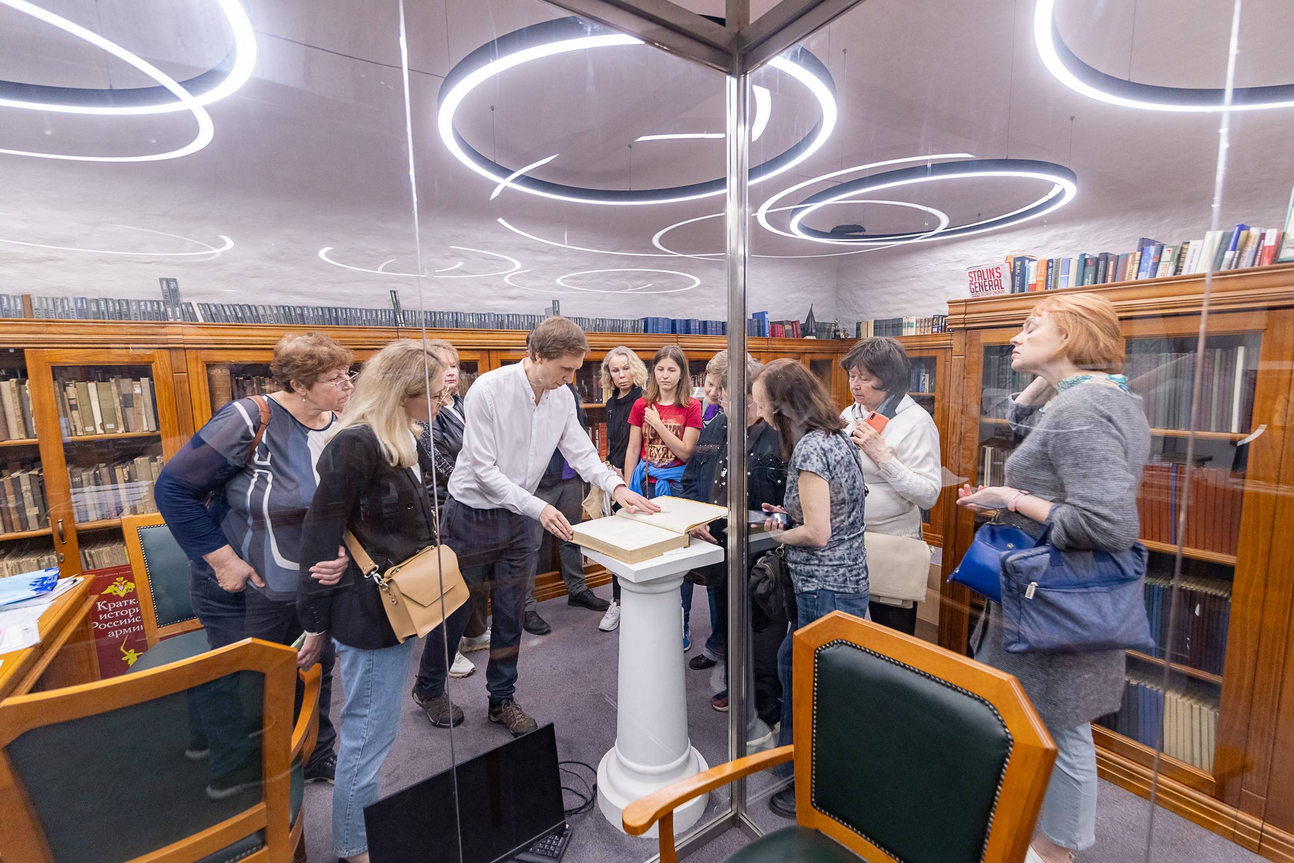 Участниками программы стали студенты и представители старшего поколения. Авторскую экскурсию для них провел Денис Шполянский, заместитель директора Департамента науки и образования Российского военно-исторического общества. Он рассказал им историю реставрации «Дома Трубецкой-Бове» в Петровском переулке, где располагается штаб-квартира РВИО, и познакомил с Библиотекой военного историка.
