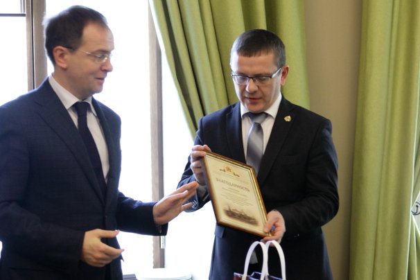Сегодня в конференц-зале Российского военно-исторического общества Председатель РВИО, Министр культуры Российской Федерации Владимир Мединский вручил Благодарности Организационного комитета по подготовке Основных мероприятий, связанных с празднованием 70-летия Победы в Великой Отечественной войне.