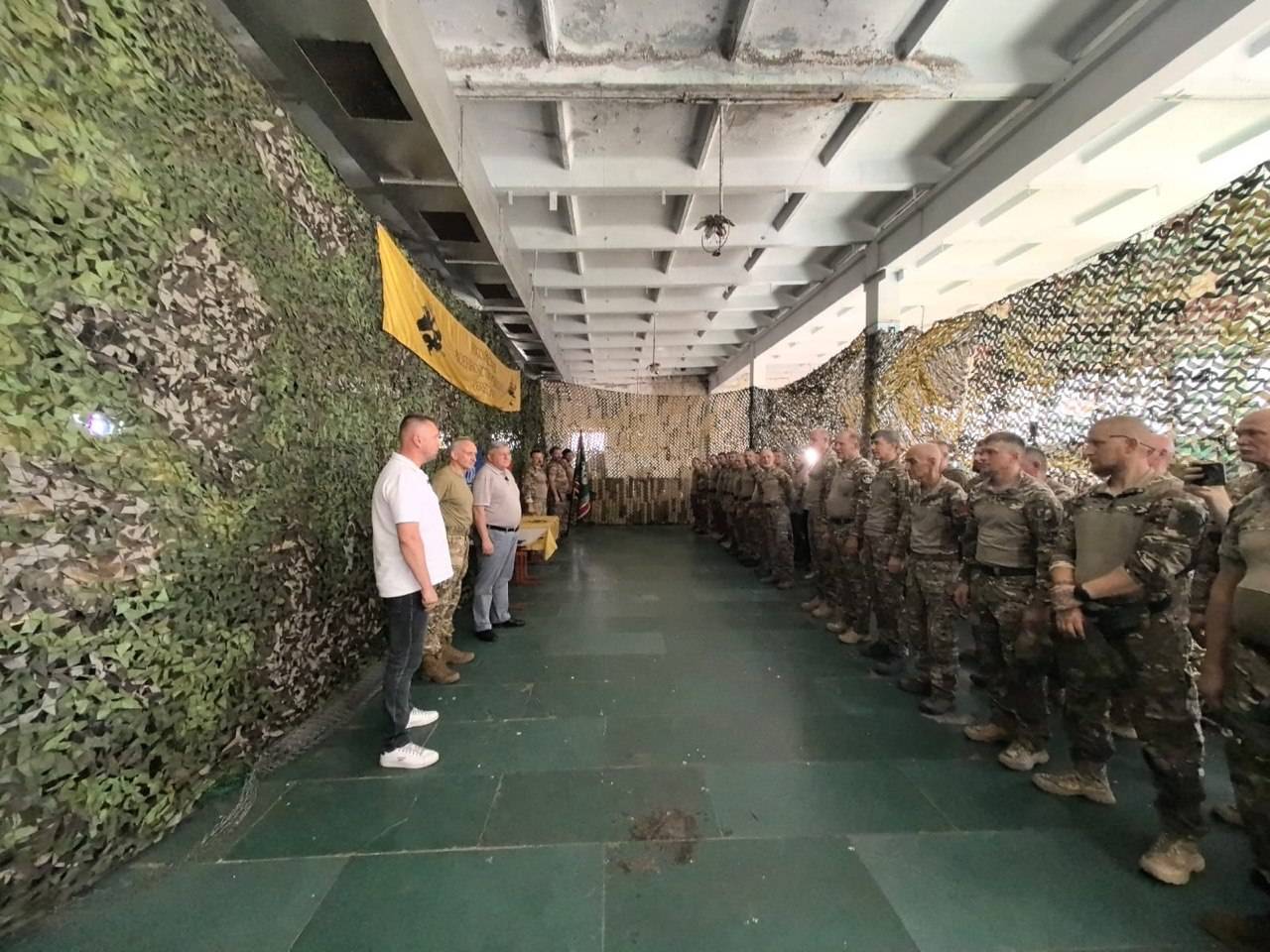 В завершении мероприятия добровольцам «Сибири», выполняющим задачи на Краматорско-Дружковском направлении, был передан флаг РВИО, который будет установлен на передовой.