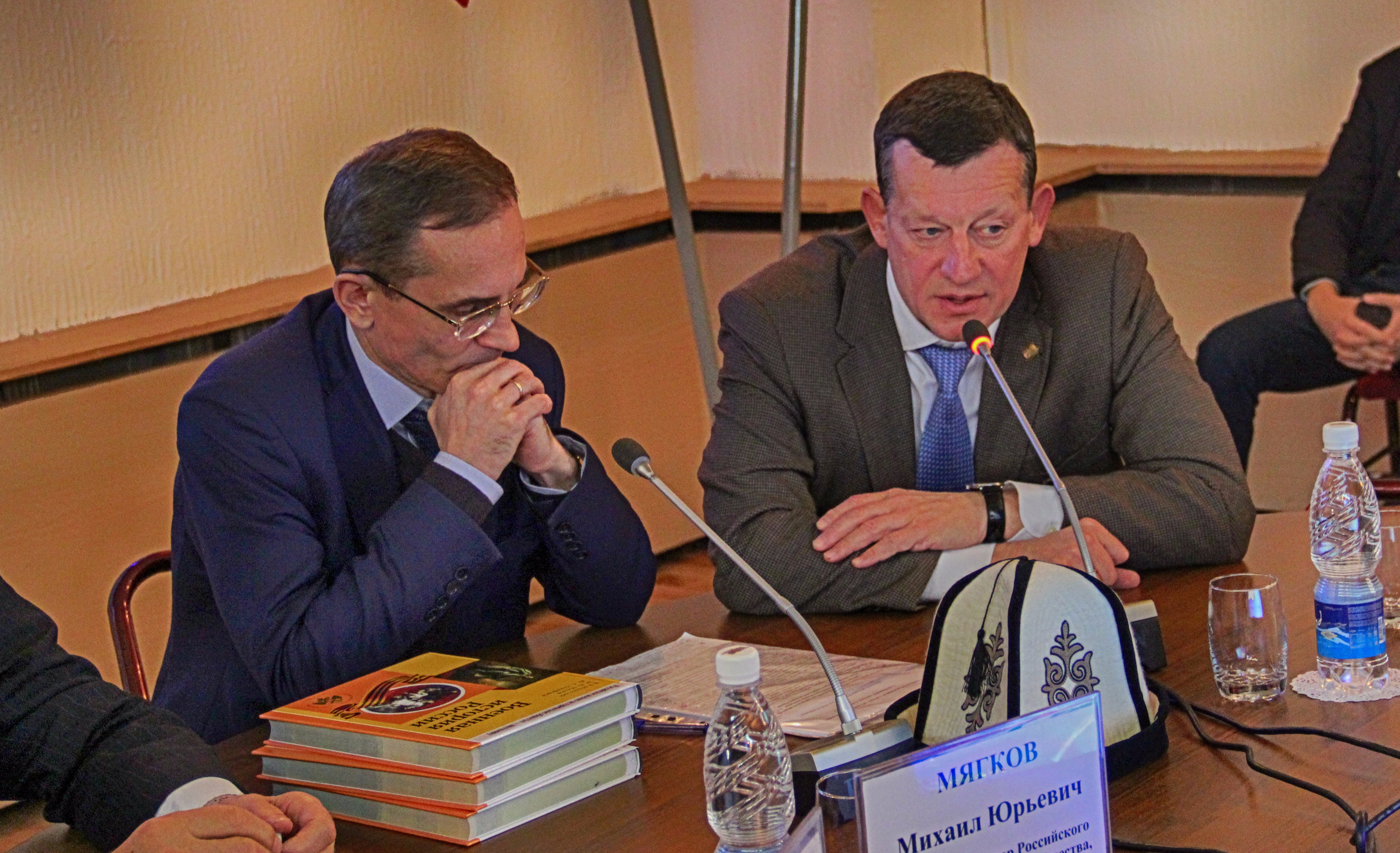 Михаил Мягков выступил с лекцией, посвященной деятельности Российского военно-исторического общества, в том числе по противодействию фальсификации истории Великой Отечественной войны. По словам научного директора РВИО, задача не только военно-исторического общества, но и всего общества в целом состоит в защите исторической правды о событиях военных лет.