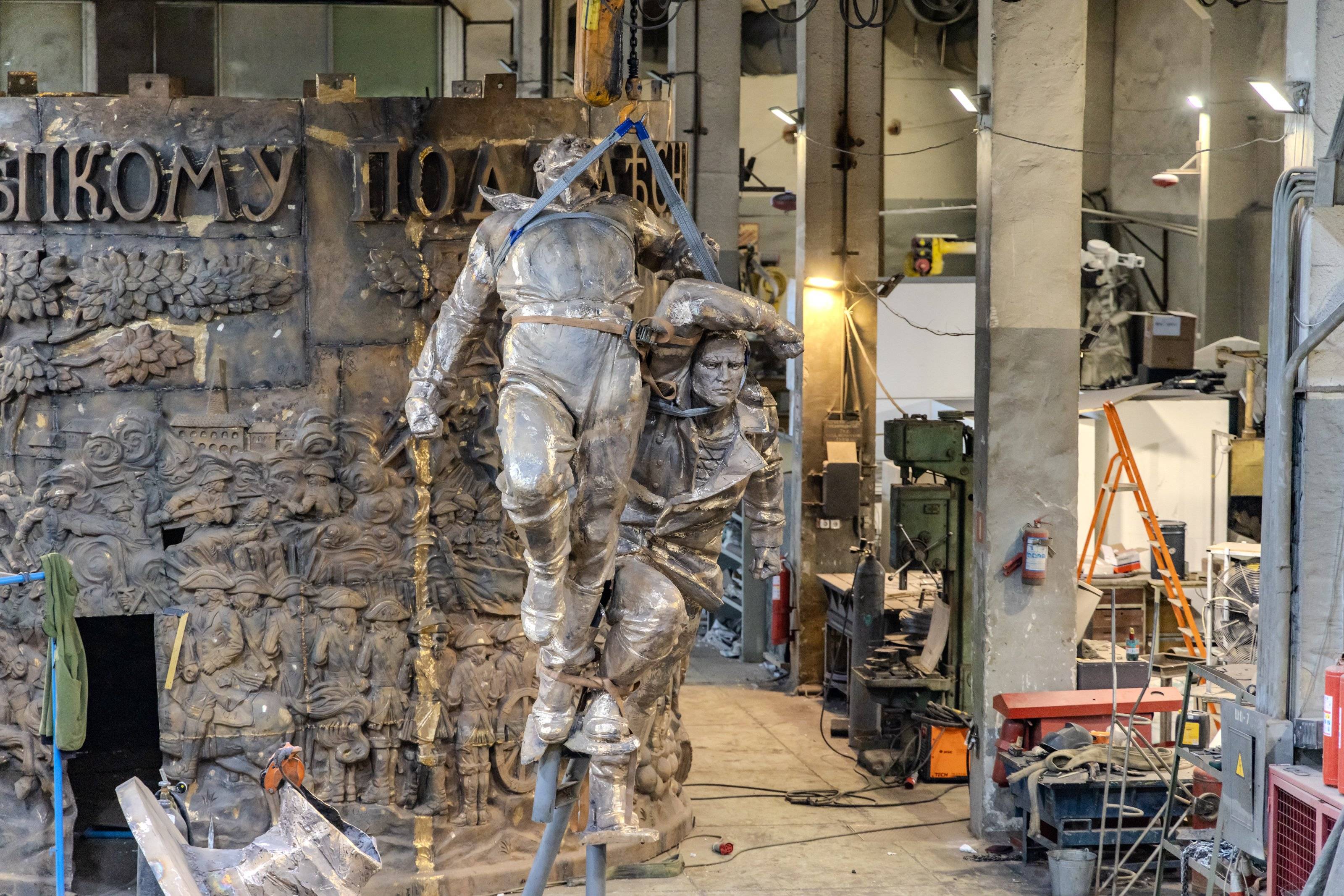 На момент подвига Николаю Вилкову было 26 лет, а матросу Петру Ильичёву – всего 18. Скульптор Маргарита Фомина постаралась запечатлеть решающую минуту и «последний прыжок» бойцов.