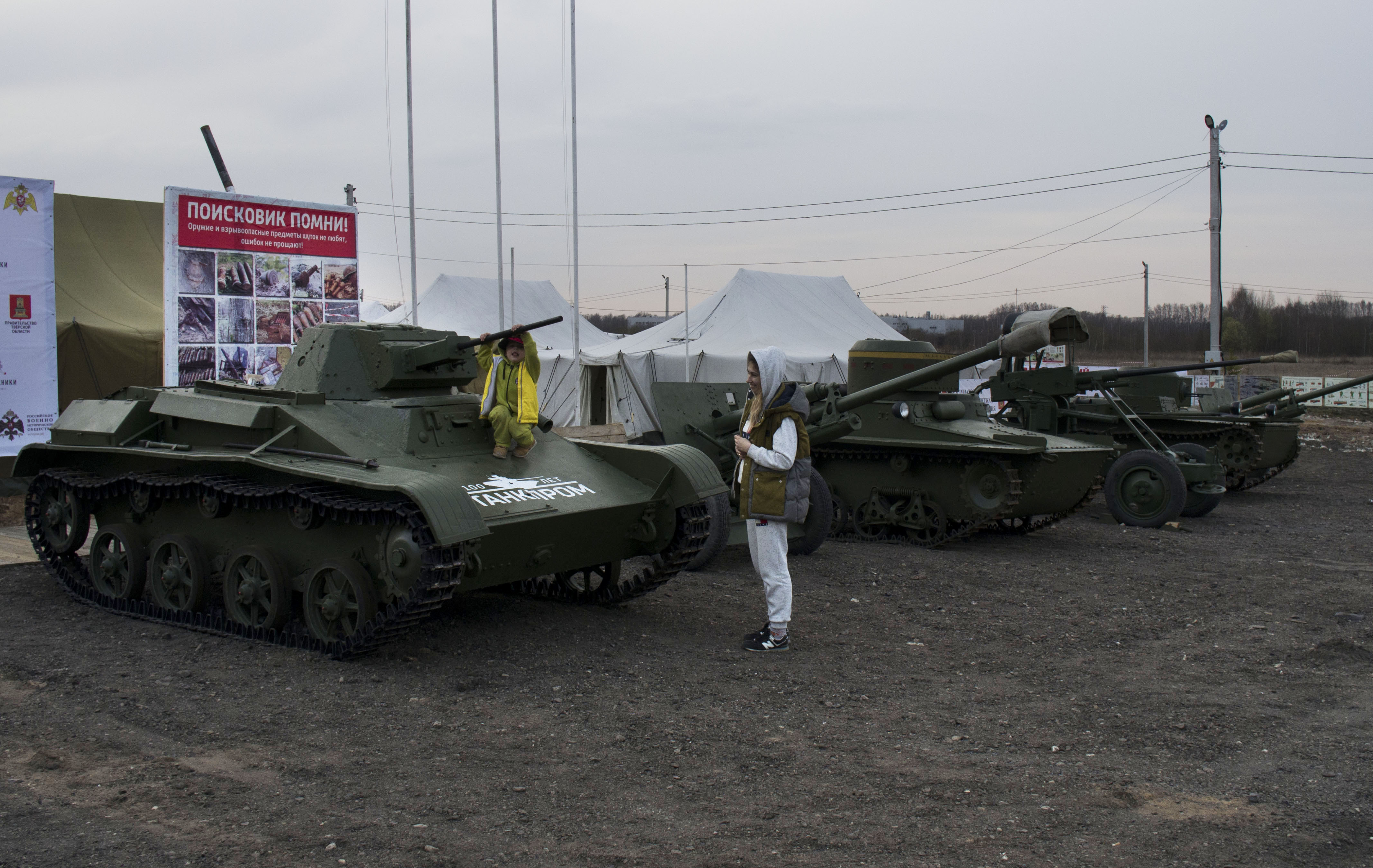 В полевом лагере, который расположен неподалеку от Ржевского мемориала Советскому солдату, завершились последние приготовления к приему поисковых отрядов - установлены информационные щиты, начала работу кухонная бригада, сотрудники музея военной техники Вадима Задорожного доставили и разместили на площадке экспонаты будущего полевого музея – технику времен Великой Отечественной войны.