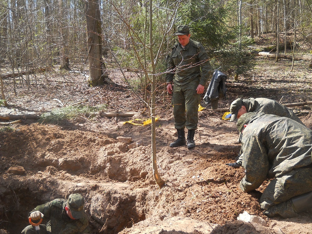 Солдаты каждый день в любую погоду работают вместе с поисковиками Российского военно-исторического общества.