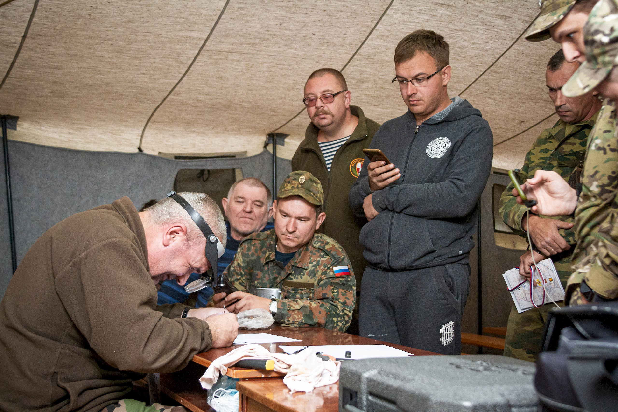 Продолжаются работы и на Знаменском плацдарме. Если в районе населенных пунктов Муравьёва и Перхурова место работ определяется четко — там огромная яма, - то в Знаменском поисковая работа действительно поисковая, если так можно выразиться. В ней участвует сводный состав поисковых отрядов «Честь», «Долг», «Звезда», «Патриот», «Дружба», «Надежда», «Искатель» и другие. Работы хватает на всех: в ходе наступательной операции Красной Армии (одной из немногих успешных в 1942-м году) враг обстреливал наших бойцов с трех сторон, вел огонь и по наступательным позициям и по раненым, которые пытались укрыться, сползая с крутого берега к Волге.