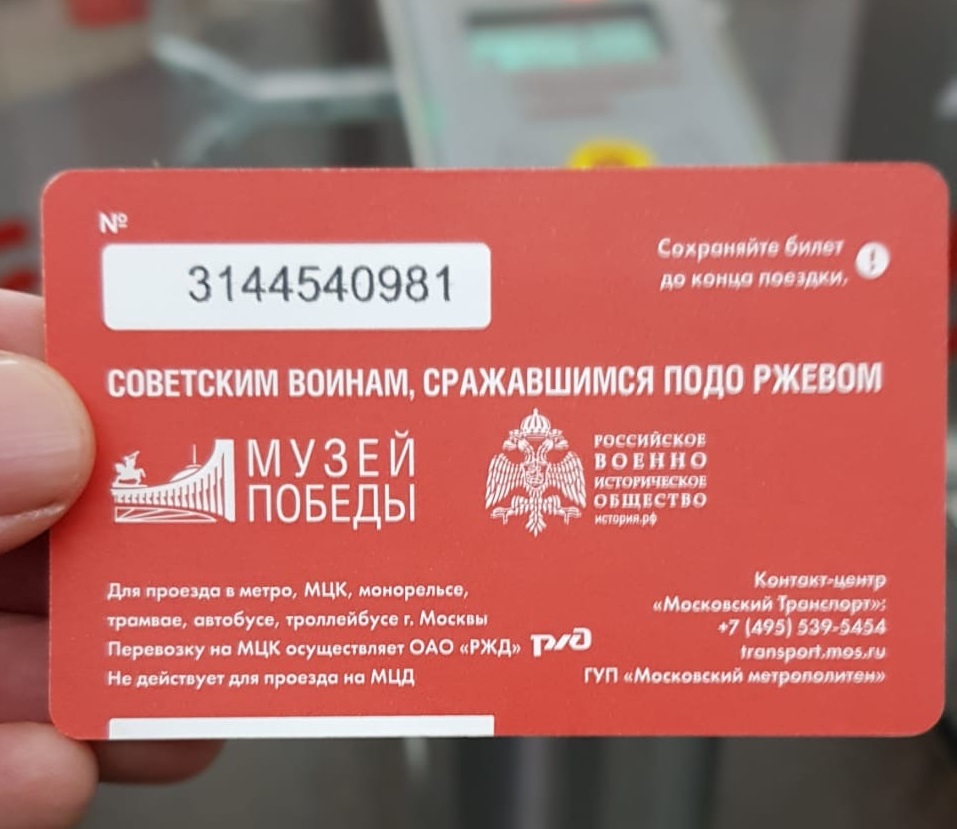 Лимитированная серия билета «Единый», посвященная предстоящему открытию Ржевского мемориала Советскому солдату, поступила в кассы Московского метрополитена.