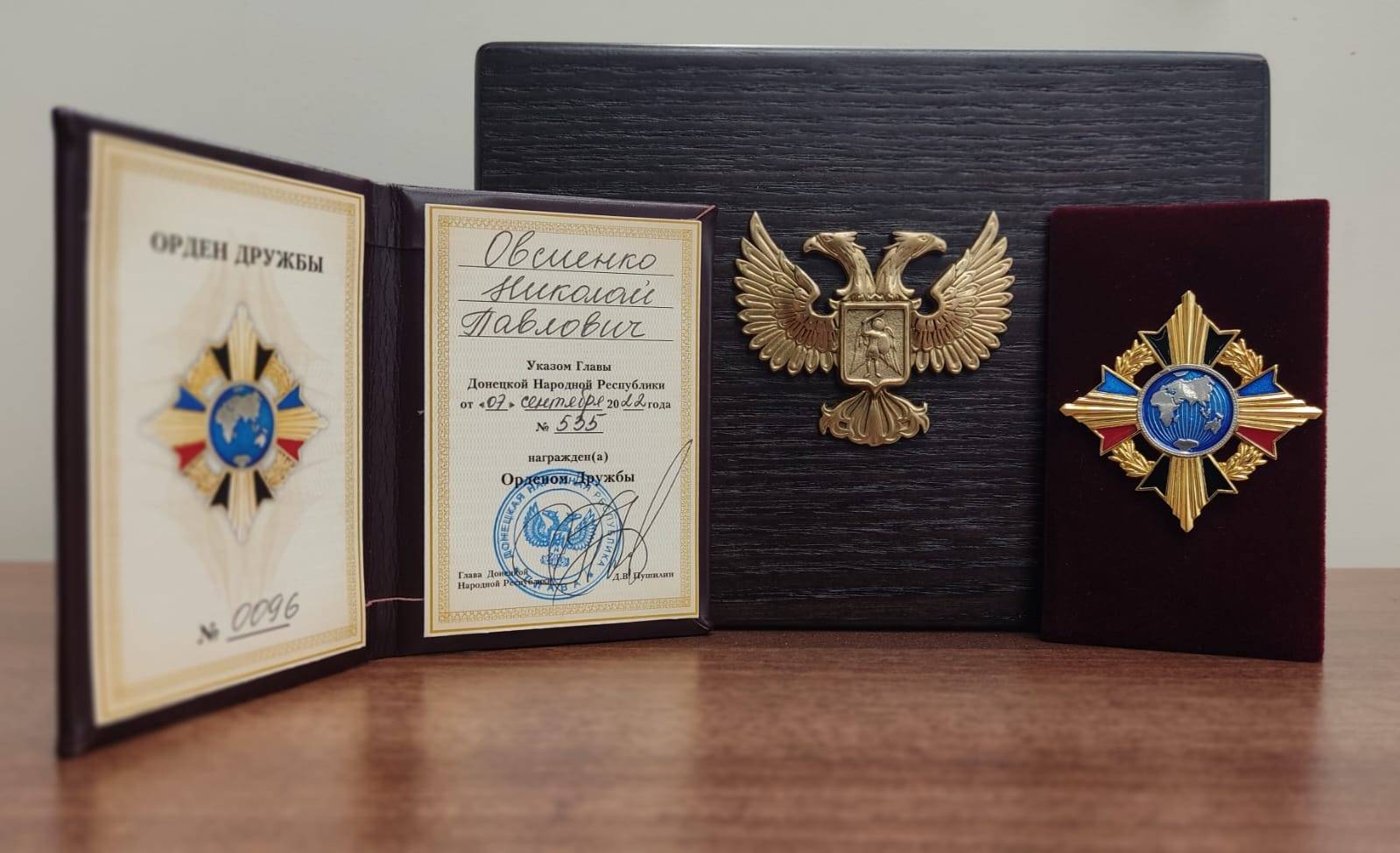 Заместитель Председателя Российского военно-исторического общества Николаем Овсиенко награжден Орденом Дружбы Донецкой Народной Республики.