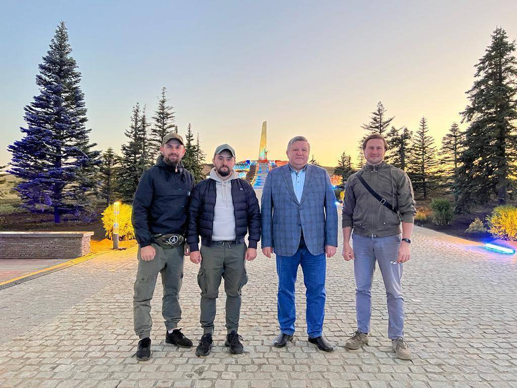 Заместитель Исполнительного директора РВИО Алексей Кондратьев, скульптор Андрей Коробцов, архитектор Константин Фомин и реставратор Андрей Дементьев награждены Знаком отличия перед Донецкой Народной Республикой III степени.