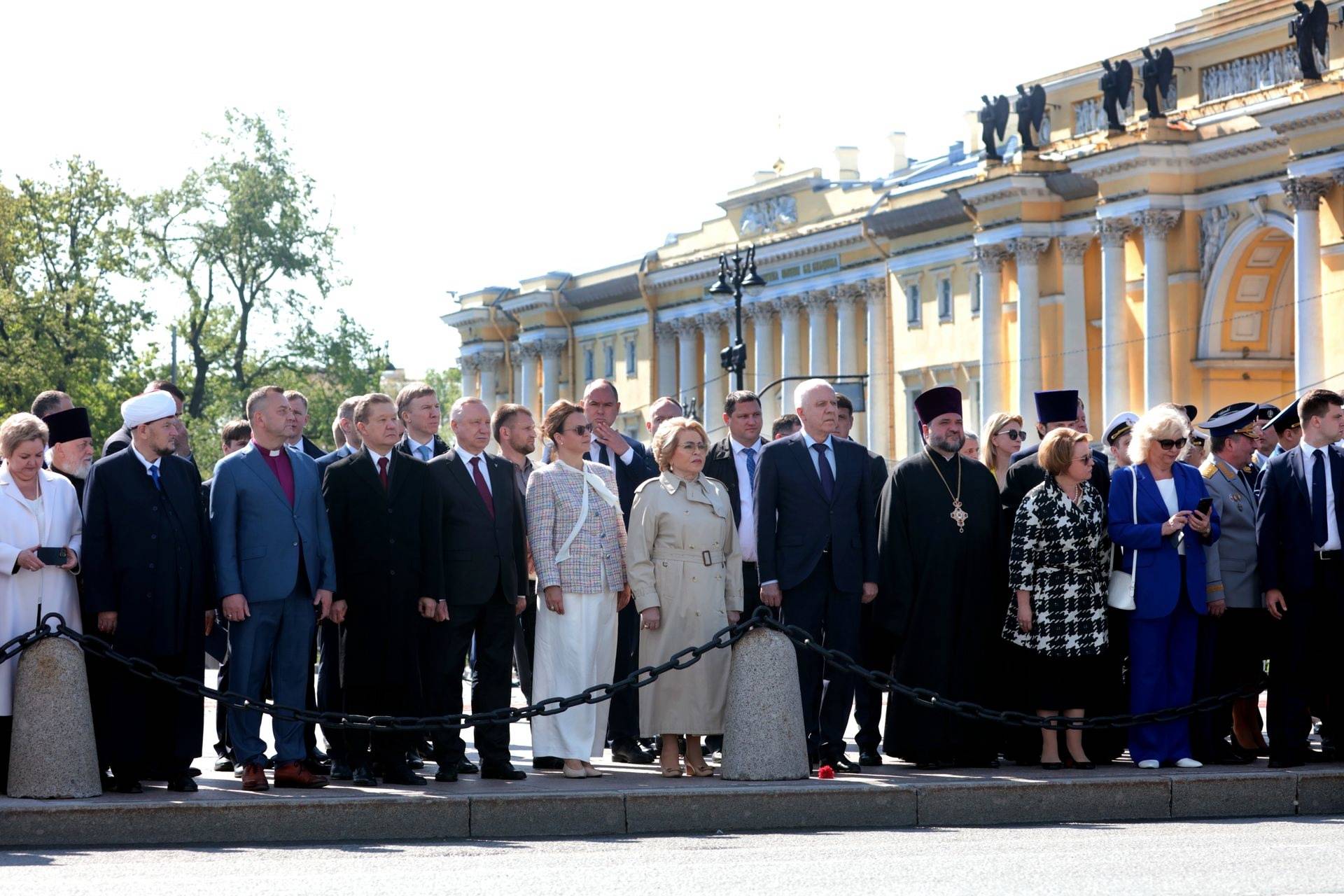 В мероприятии приняли участие Председатель Совета Федерации ФС РФ Валентина Матвиенко, полномочный представитель Президента РФ в Северо-Западном федеральном округе Александр Гуцан; статс-секретарь – заместитель Министра обороны РФ Анна Цивилёва, Губернатор Санкт-Петербурга Александр Беглов; Председатель Законодательного Собрания города Александр Бельский, представители законодательных и исполнительных органов государственной власти, Конституционного Суда РФ, Вооруженных Сил России, религиозных конфессий, общественных организаций, Почётные граждане Санкт-Петербурга.