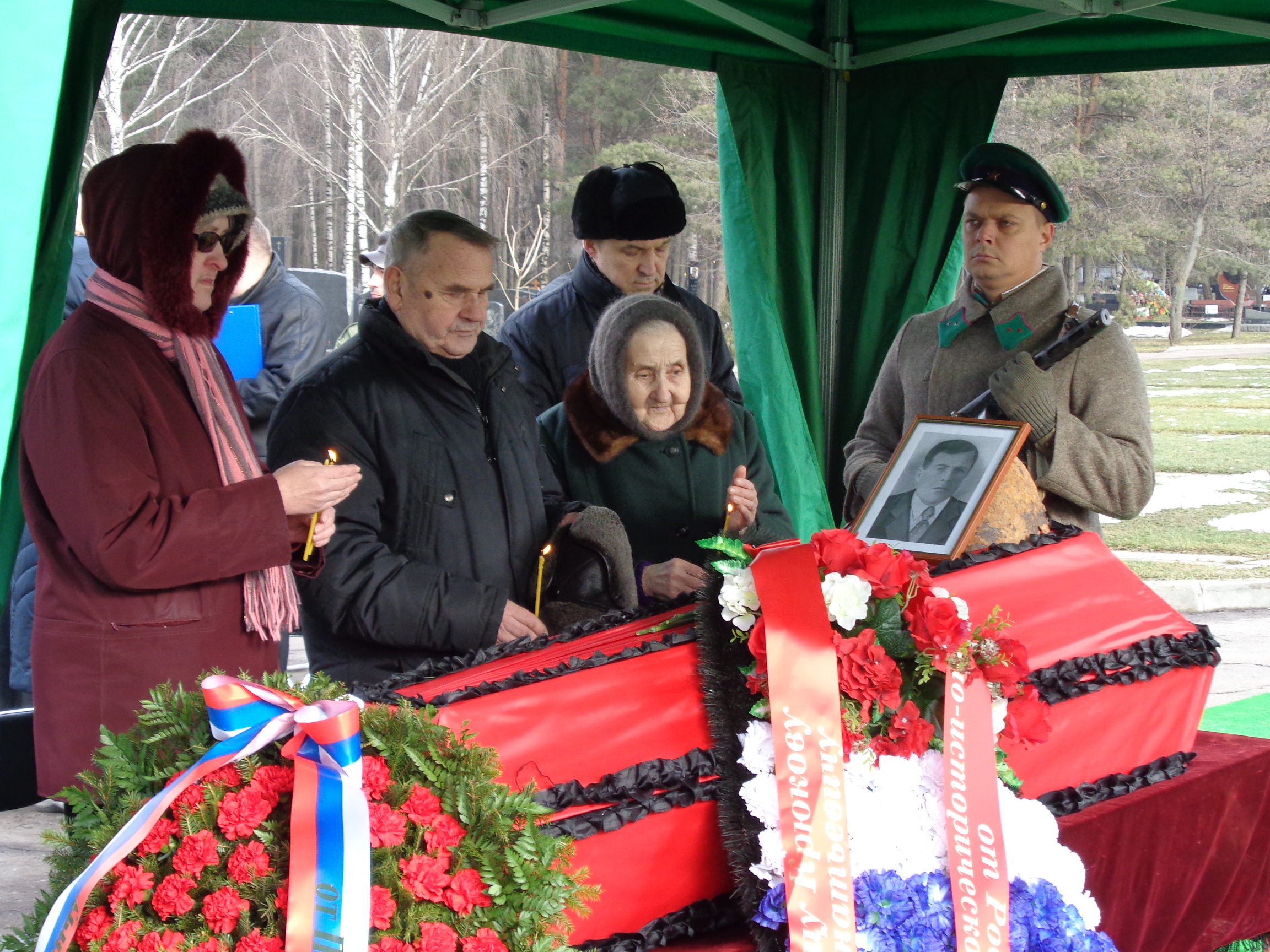 На ритуальную церемонию приехали дети героя – Анна Алексеевна и Виктор Алексеевич, внуки и правнуки. В руках у Анны Алексеевны – сохранившееся портретное фото своего отца. Гроб с останками защитника Отечества сопровождали участники военно-исторических клубов, Рота Почетного караула, военный оркестр.